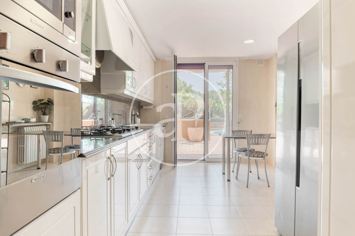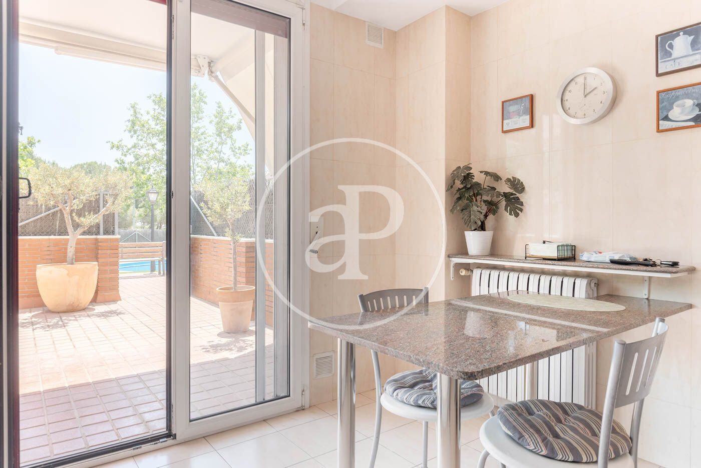 Al entrar en esta maravillosa propiedad, un impresionante recibidor distribuye los espacios, empezando  por una cocina completamente equipada, con salida directa a la terraza para disfrutar de las comidas al aire libre.. El espacioso salón-comedor, con su elegante chimenea y grandes ventanales, inunda el espacio de luz natural, creando una atmósfera cálida y acogedora. Desde aquí, se accede a una encantadora sala acristalada, segundo salón que podría ser la ampliación del principal,perfecta para disfrutar de reuniones familiares o momentos de relax, que a su vez conecta con  la zona exterior.  El extenso jardín cuenta con varias zonas, ajardinada perfecta para barbacoas y con su propia entrada, piscina con zona chill out y baño completo/vestuario y porche todo ello disfrutando de una gran privacidad. En la zona de noche de la planta principal, se encuentran tres dormitorios dobles de generosas dimensiones, acompañados de un baño completo, que permiten plantear muchas distribuciones. En la planta superior, se abre una versátil sala multiusos, ideal para adaptarse a tus necesidades, y un segundo baño completo con una bañera de hidromasaje y ducha, creando un verdadero spa en casa. Los tres dormitorios adicionales, todos dobles, incluyen uno con un impresionante vestidor, brindando un espacio único para cada miembro de la familia. La propiedad también cuenta con un garaje para un coche, que conecta con una espaciosa sala polivalente que ofrece múltiples posibilidades, desde un gimnasio privado hasta un área de entretenimiento. Los acabados de la vivienda son de alta gama, con suelos de gres y cerámica, calefacción por radiadores de gas, carpintería de aluminio, aire acondicionado y placas solares, lo que asegura confort y eficiencia energética en todo momento.  Sant Quirze del Vallés es el lugar ideal para quienes buscan un entorno tranquilo, pero perfectamente conectado con las principales ciudades de la región. Este municipio, con su encanto mediterráneo y sus calles arboladas, ofrece un estilo de vida relajado y accesible. Se encuentra a solo 10 minutos andando del centro del pueblo y a 15 minutos andando de la estación (3 minutos en coche), rodeado de naturaleza y modernas construcciones, y cuenta con todos los servicios necesarios: escuelas, centros comerciales, servicios médicos y diversas opciones de ocio. Además, está excelentemente comunicado con Barcelona a través de la C-58 en solo 25 minutos, y los túneles de Vallvidrera están a tan solo 15 minutos, con fácil acceso a la costa mediante la AP-7. Sin duda, esta es una propiedad que ofrece lo mejor de ambos mundos: un refugio de tranquilidad en la naturaleza con todas las comodidades y conexiones para vivir de forma plena.