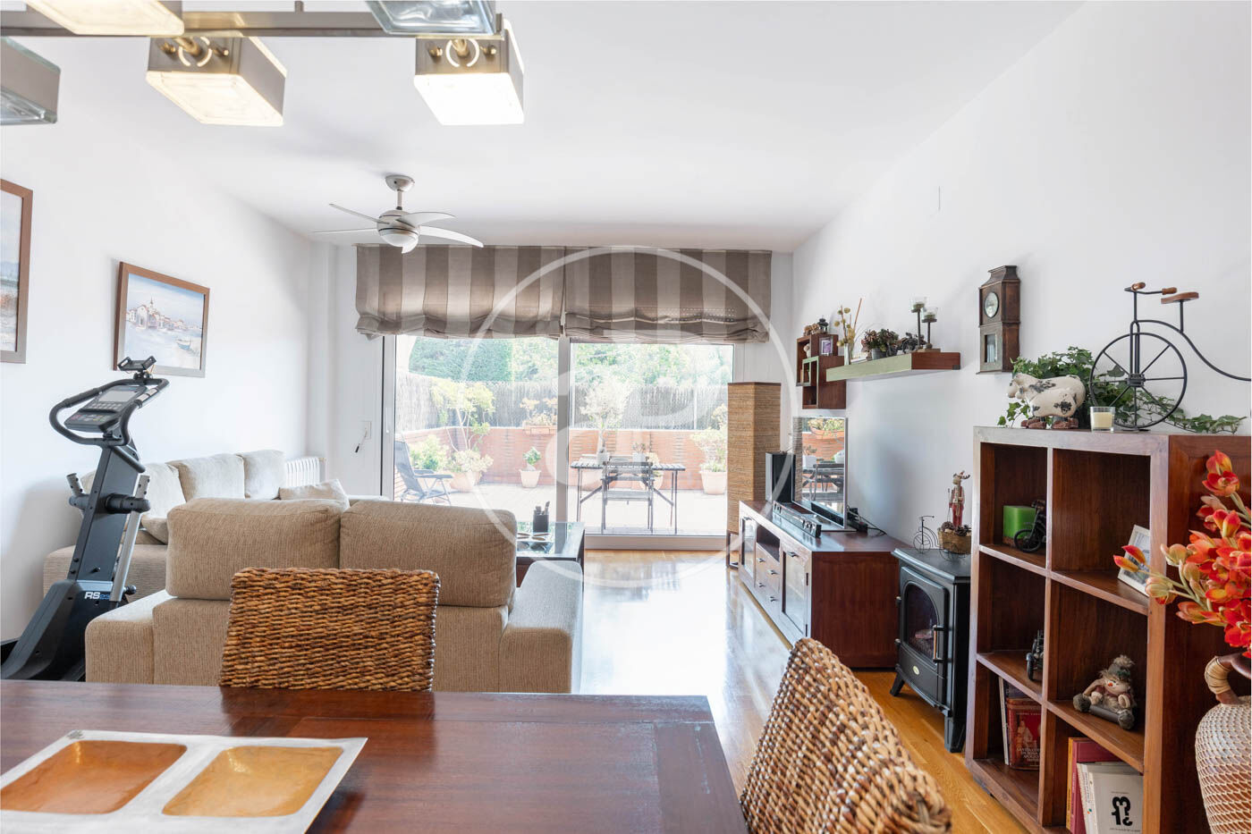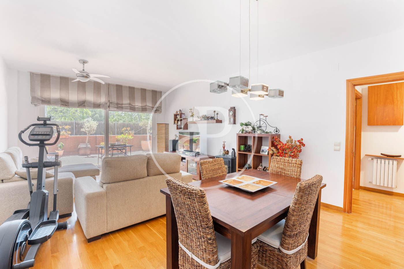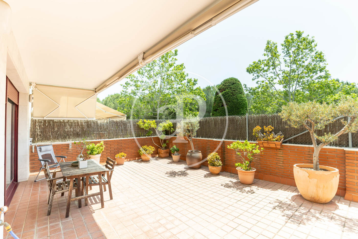 aProperties tiene el placer de presentarles, en exclusiva, este fantástico, precioso e impecable piso en plana baja de 115m2 (90m2 útiles), listo para entrar a vivir. La vivienda cuenta con una magnífica terraza de 37m2 con orientación sud toldos automáticos, total privacidad y acceso a pie plano a la zona comunitaria con piscina y, al otro lado, jardín de 20m2 con orientación noroeste. El piso se encuentra en Mas Duran, el barrio más cotizado de Sant Quirze, en calle tan tranquila como céntrica y al lado de todos los servicios y de la estación de tren, a 4 minutos andando (Estación Sant Quirze - FGC).