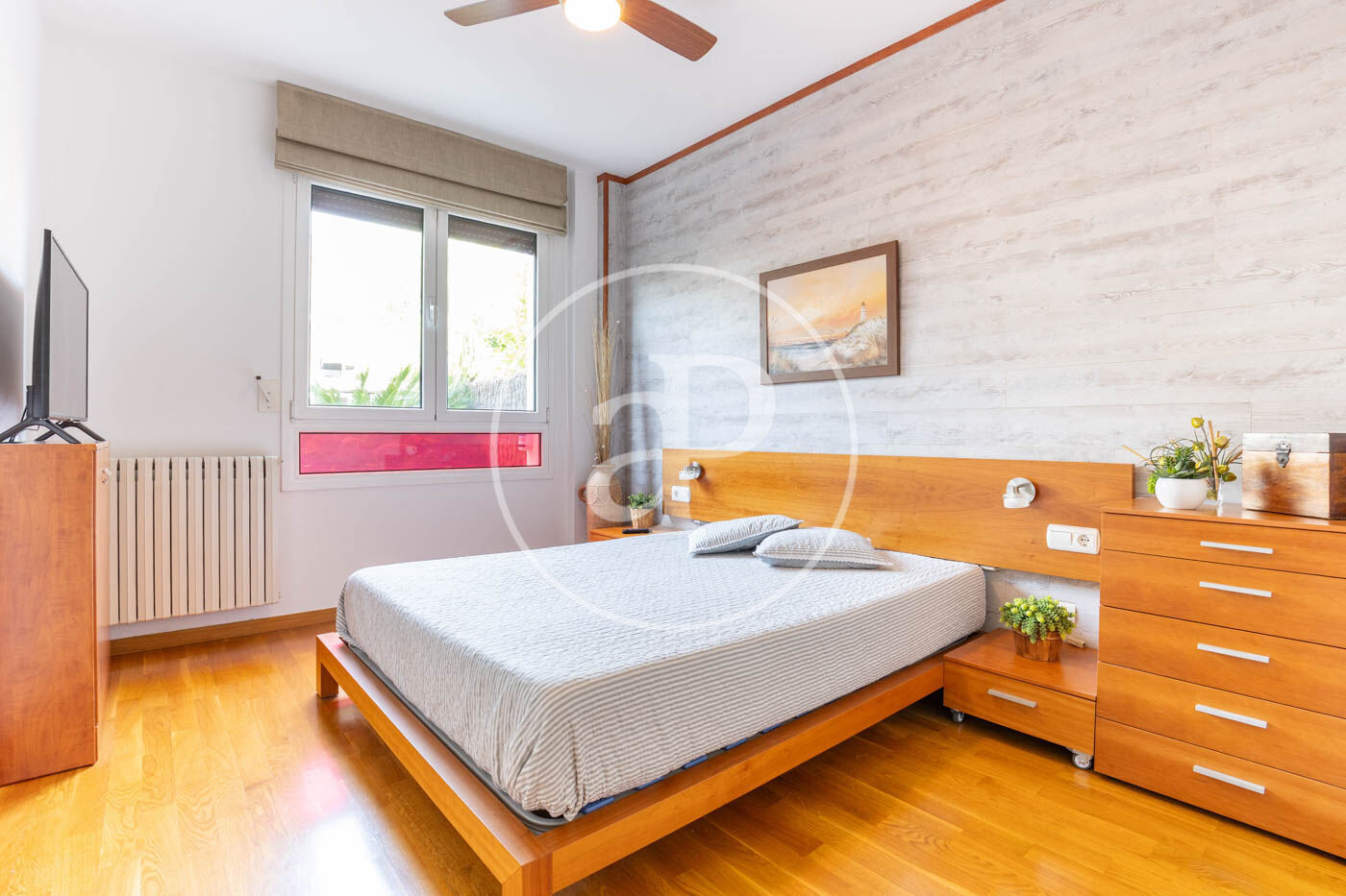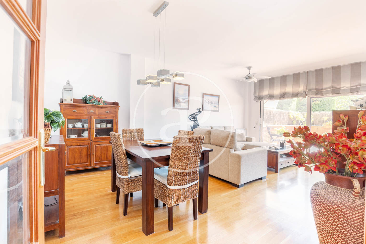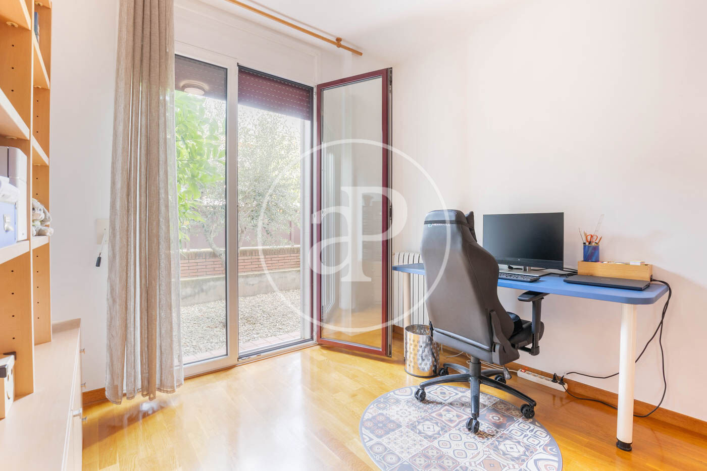 aProperties tiene el placer de presentarles, en exclusiva, este fantástico, precioso e impecable piso en plana baja de 115m2 (90m2 útiles), listo para entrar a vivir. La vivienda cuenta con una magnífica terraza de 37m2 con orientación sud toldos automáticos, total privacidad y acceso a pie plano a la zona comunitaria con piscina y, al otro lado, jardín de 20m2 con orientación noroeste. El piso se encuentra en Mas Duran, el barrio más cotizado de Sant Quirze, en calle tan tranquila como céntrica y al lado de todos los servicios y de la estación de tren, a 4 minutos andando (Estación Sant Quirze - FGC).