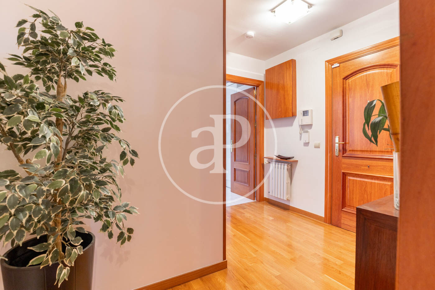 Accedemos a la vivienda por el generoso recibidor con armario de cortesía. A la derecha la fantástica, luminosa y espléndida zona de día, con su gran salón comedor y la preciosa cocina office, ambos con acceso directo a la increíble terraza de 37m2, con total privacidad, vistas al verde los árboles y azul del cielo y acceso a pie plano a zona comunitaria con piscina.