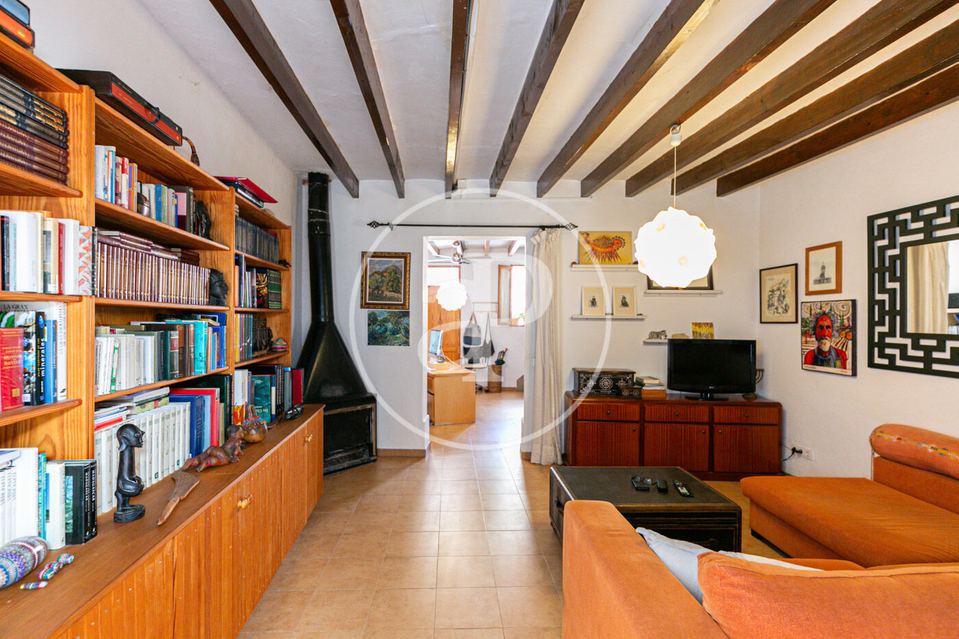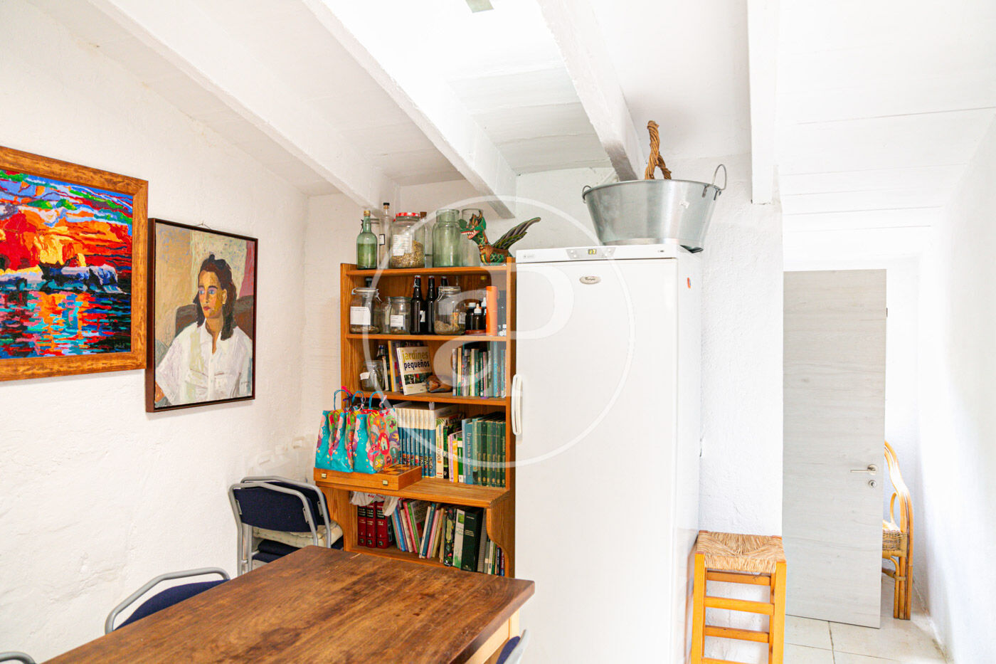 El corazón de la vivienda se encuentra en un amplio salón que incluye una impresionante chimenea, proporcionando así un ambiente cálido y acogedor durante los días más frescos del año. En esta área, se ubica también una habitación privada con su propio cuarto de baño, perfectamente equipada para hospedar a tus invitados, amigos o familiares con total privacidad y comodidad (actualmete se utiliza como comedor)