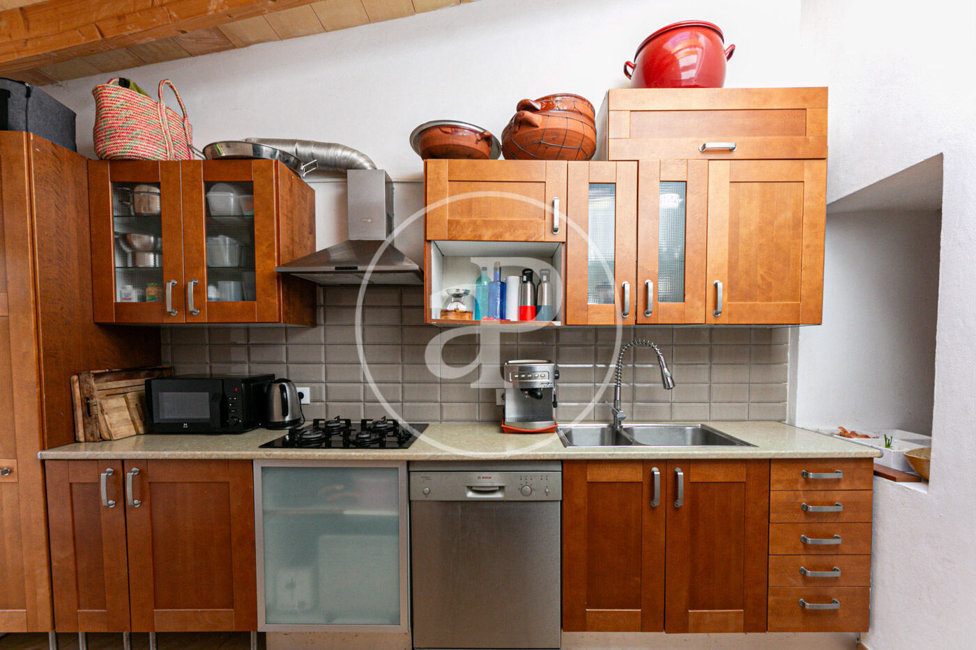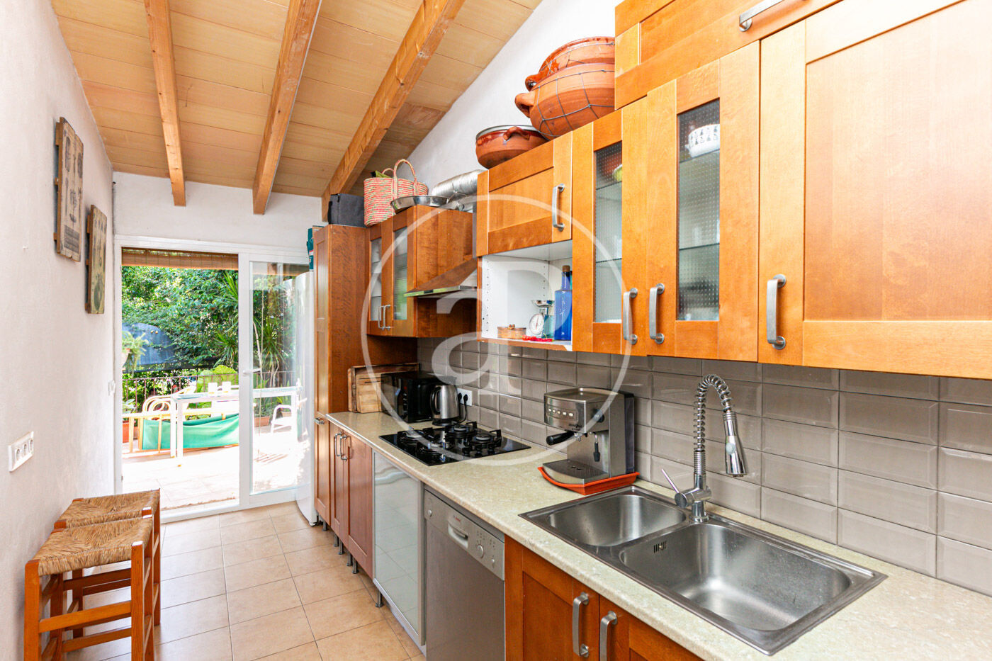 La cocina, amplia y bañada en luz natural, ha sido diseñada meticulosamente para satisfacer las necesidades de cualquier entusiasta de la culinaria. Además, su ubicación estratégica permite mantener una vista constante sobre el hermoso jardín circundante, que cuenta con árboles frutales capaces de proporcionarte frutas frescas y deliciosas durante la temporada adecuada.