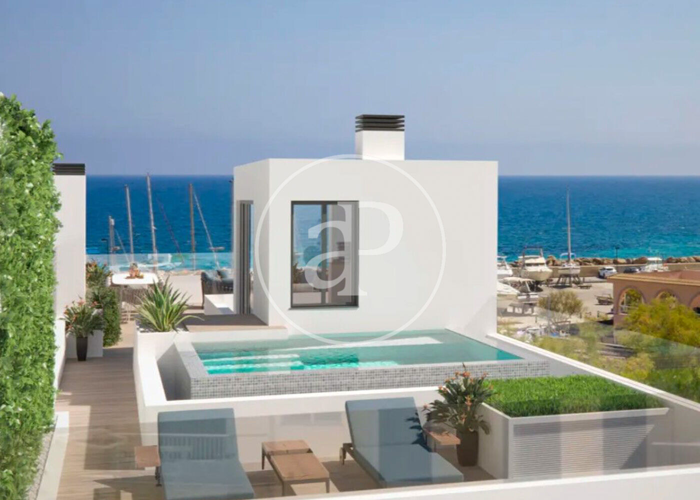 PORT BLAU RESIDENCE es una vivienda única en primera línea de Can Picafort, frente al puerto y sin edificaciones que interrumpan la vista al mar. Su arquitectura se organiza en varios niveles, diferenciando claramente cada uso: la planta baja como acceso privado con aparcamiento, la primera planta destinada al descanso con dormitorio principal, baño en suite y zona de trabajo, la segunda planta como espacio de vida con salón, comedor y cocina abierta conectados a la terraza, y una cubierta con piscina privada, solárium y zona chill out.