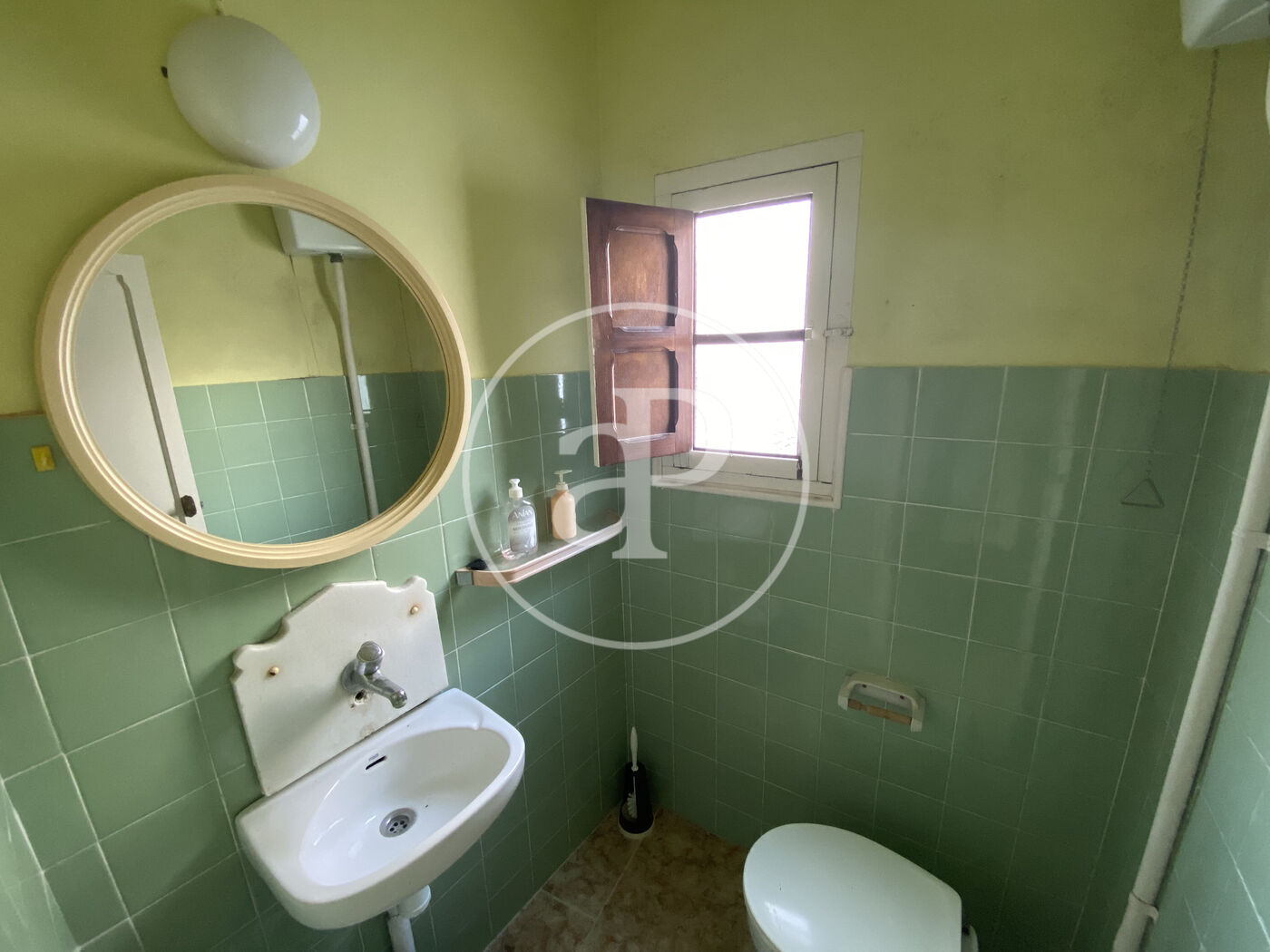 La planta inferior (193m2) compuesta por una sala común, 3 dormitorios, cocina de época con chimenea y diversas zonas de almacenamiento, además de un gran patio interior desde el cuál se puede acceder a otra vivienda en la parte posterior de la propiedad, espacio independiente al resto del inmueble.
