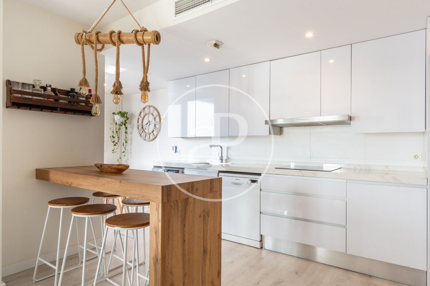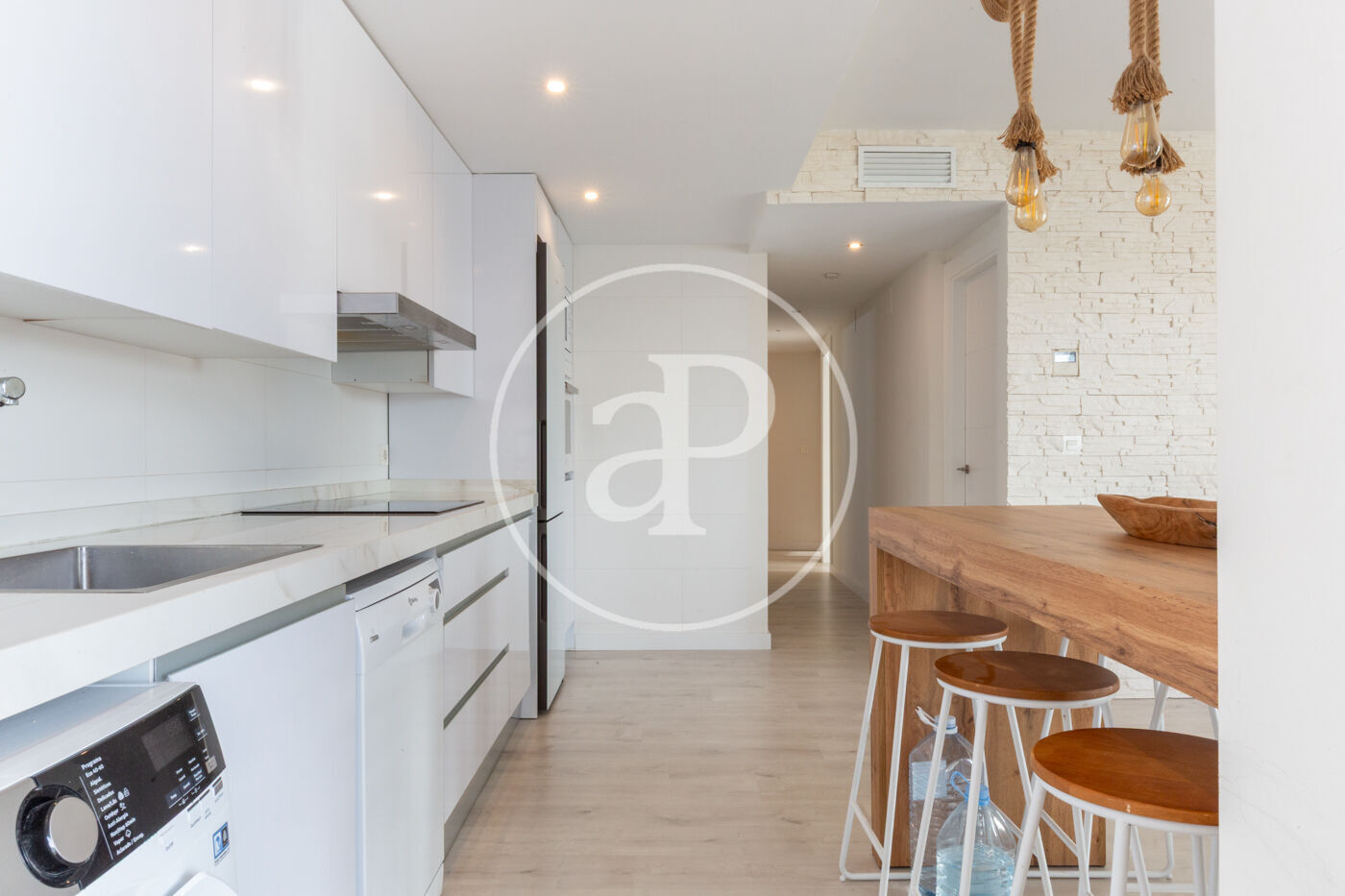 La vivienda cuenta con armarios empotrados, aire acondicionado frío/calor centralizado por conductos y suelo de parquet. Destacan la encimera de mármol de gran calidad y la elegante nevera de cristal.