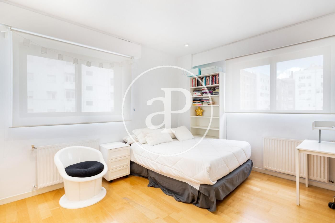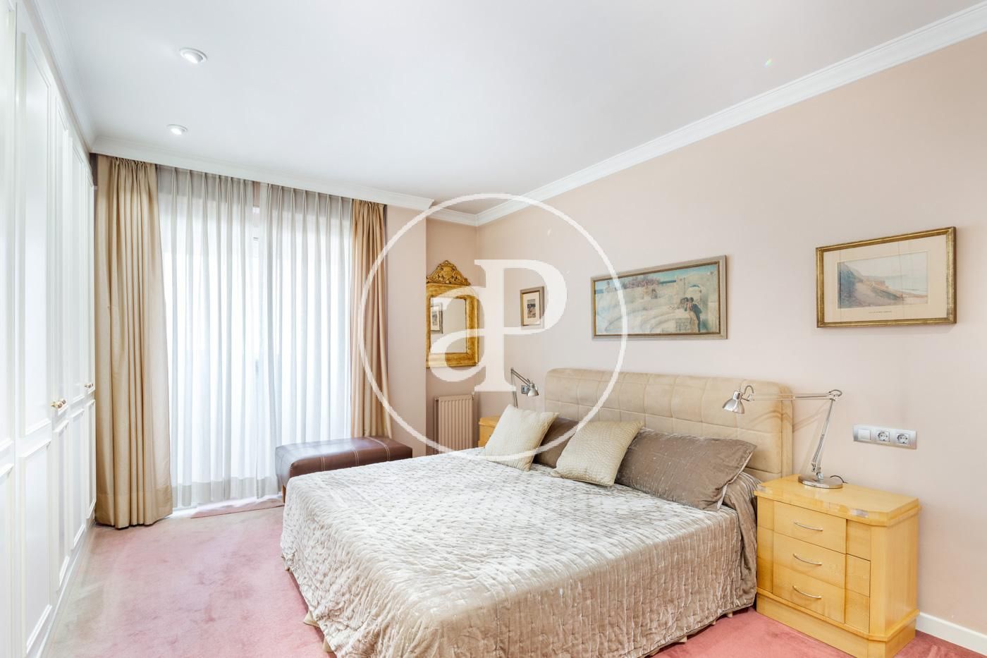 La propiedad se caracteriza por su amplitud y comodidad en todas sus estancias. Consta de cuatro habitaciones, tres de ellas muy amplias y dobles, una de ellas en suite y todas con armarios empotrados. También dispone de tres baños completos con materiales de primera calidad. El suelo es de parqué de madera en toda la vivienda.