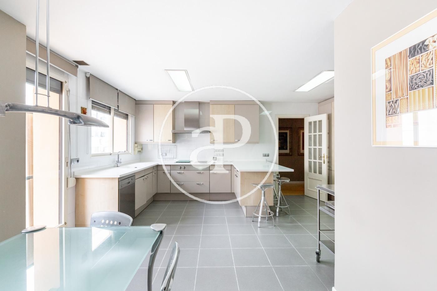 La cocina, equipada con electrodomésticos de primeras marcas, es grande y espaciosa, perfecta para disfrutar de una comida o desayuno informal.
