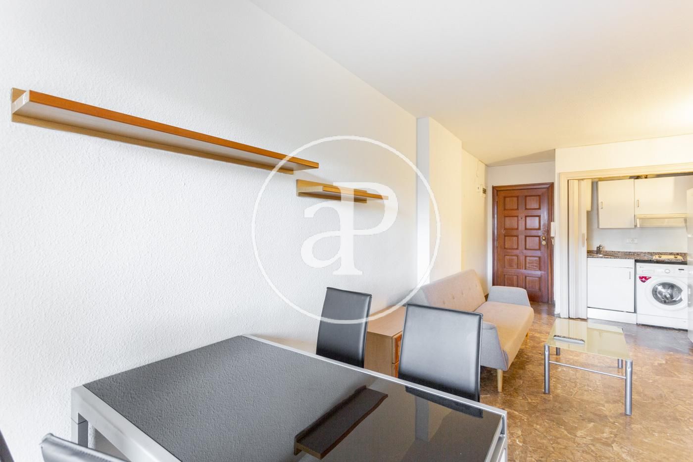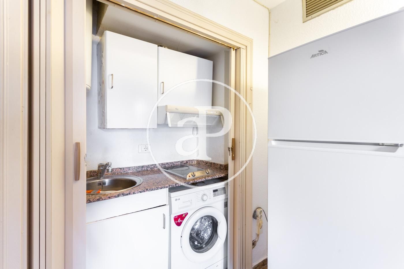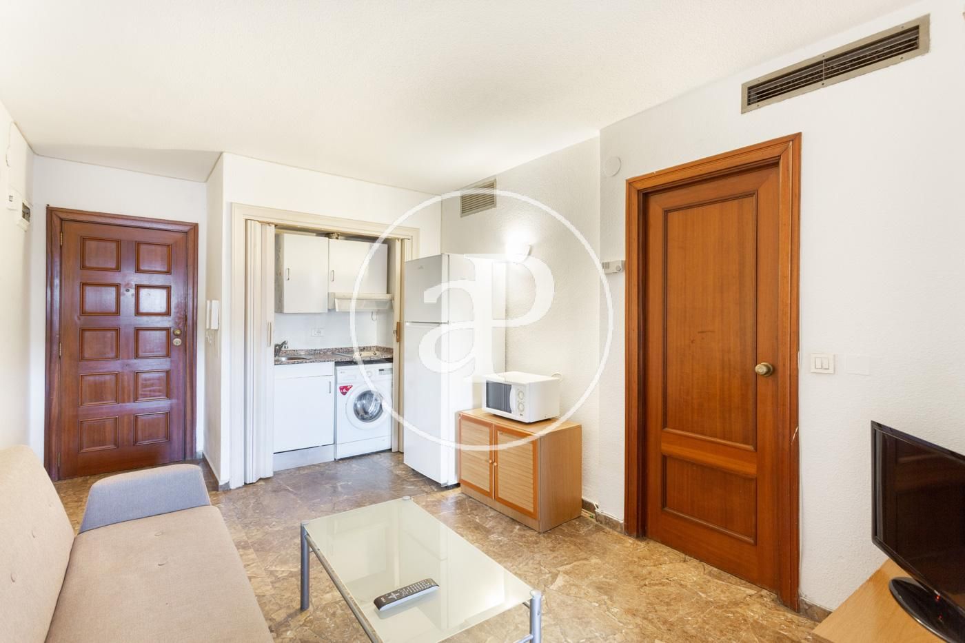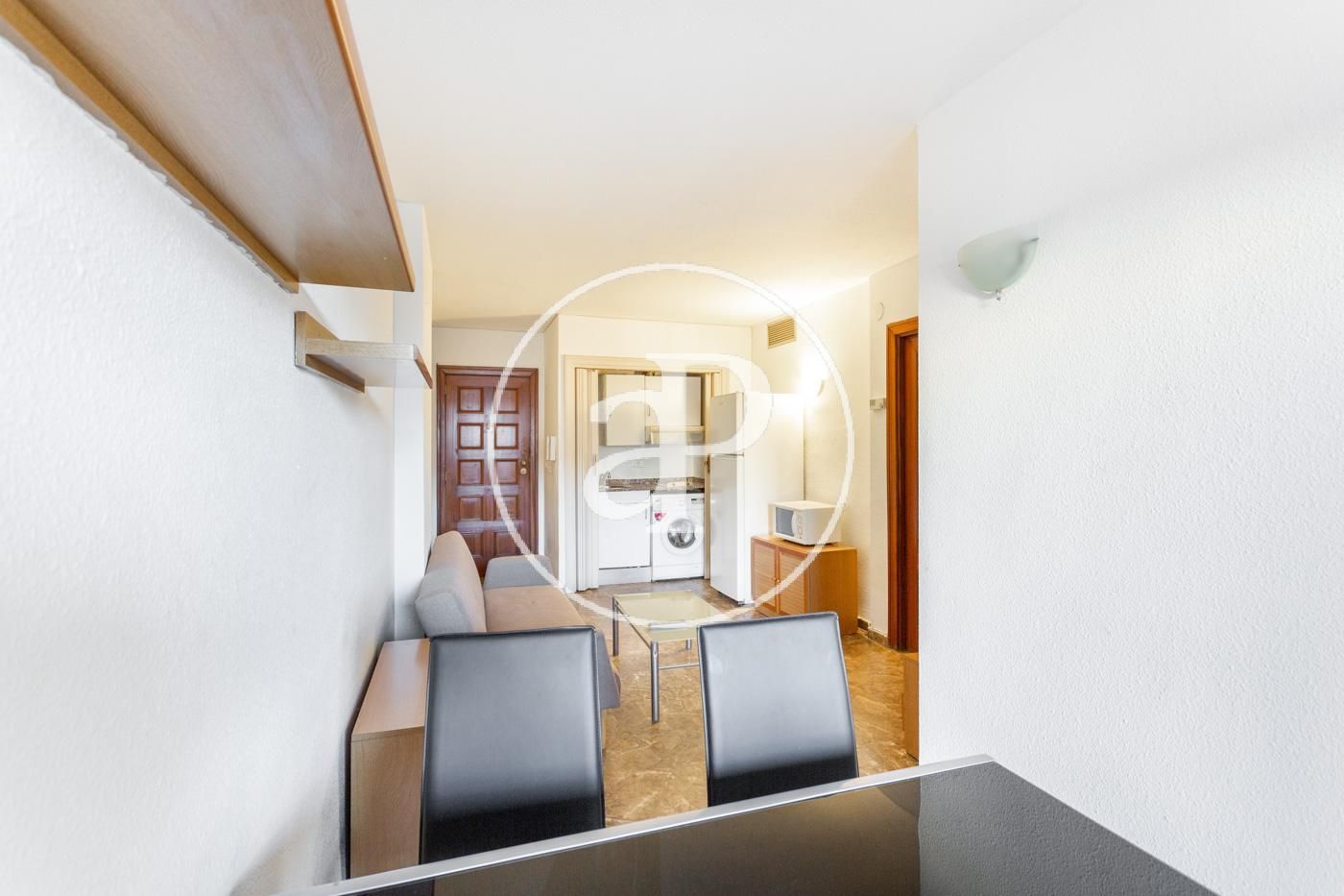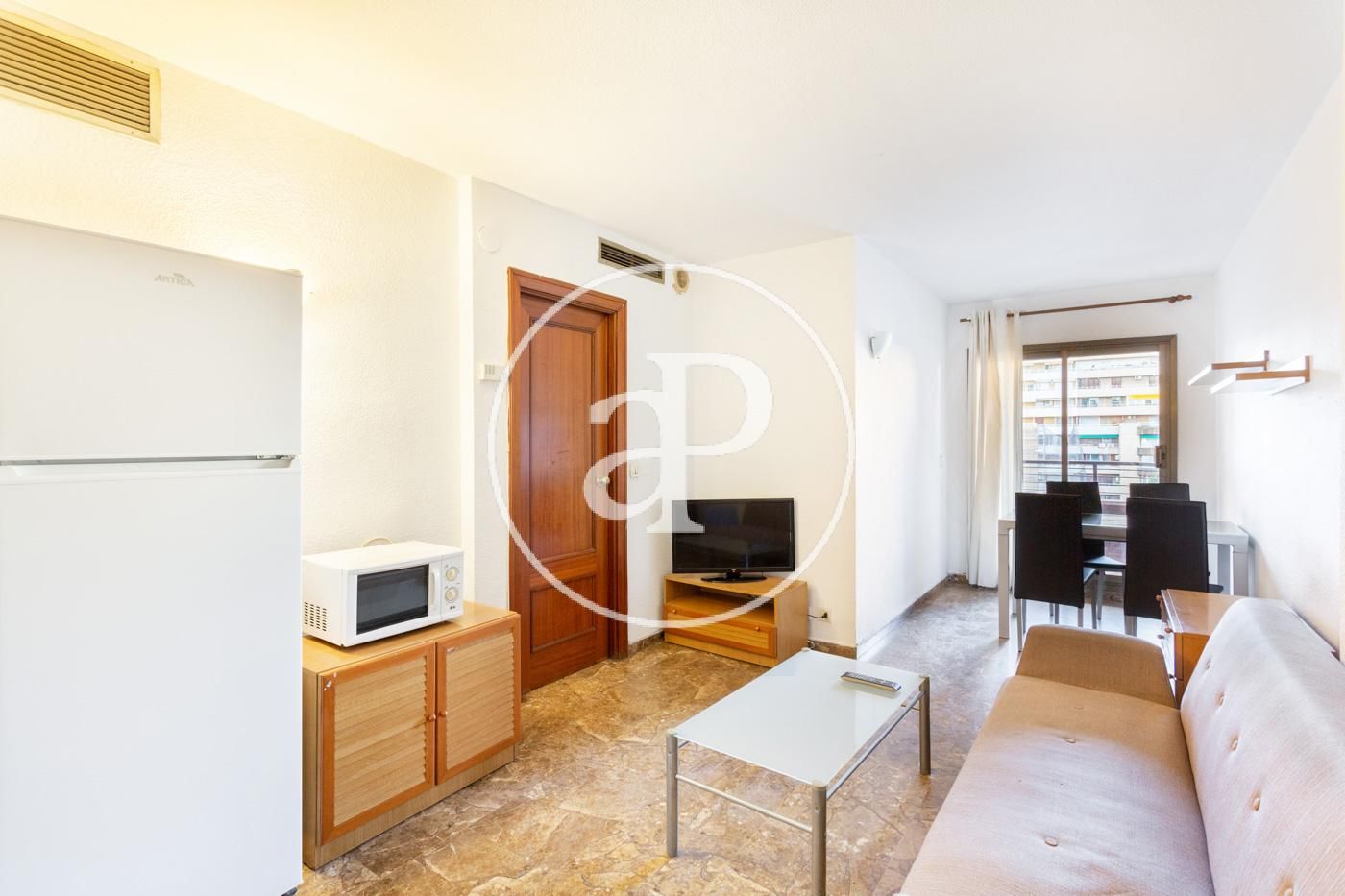 Distribuido en un amplio comedor, con terraza que da a la calle Xátiva con unas vistas espectaculares de la ciudad, habitación amplia y con armarios empotrados, cuarto de baño completo, cocina equipada con electrodomésticos, totalmente amueblado. los muebles pueden variar. Equipado con aire acondicionado.