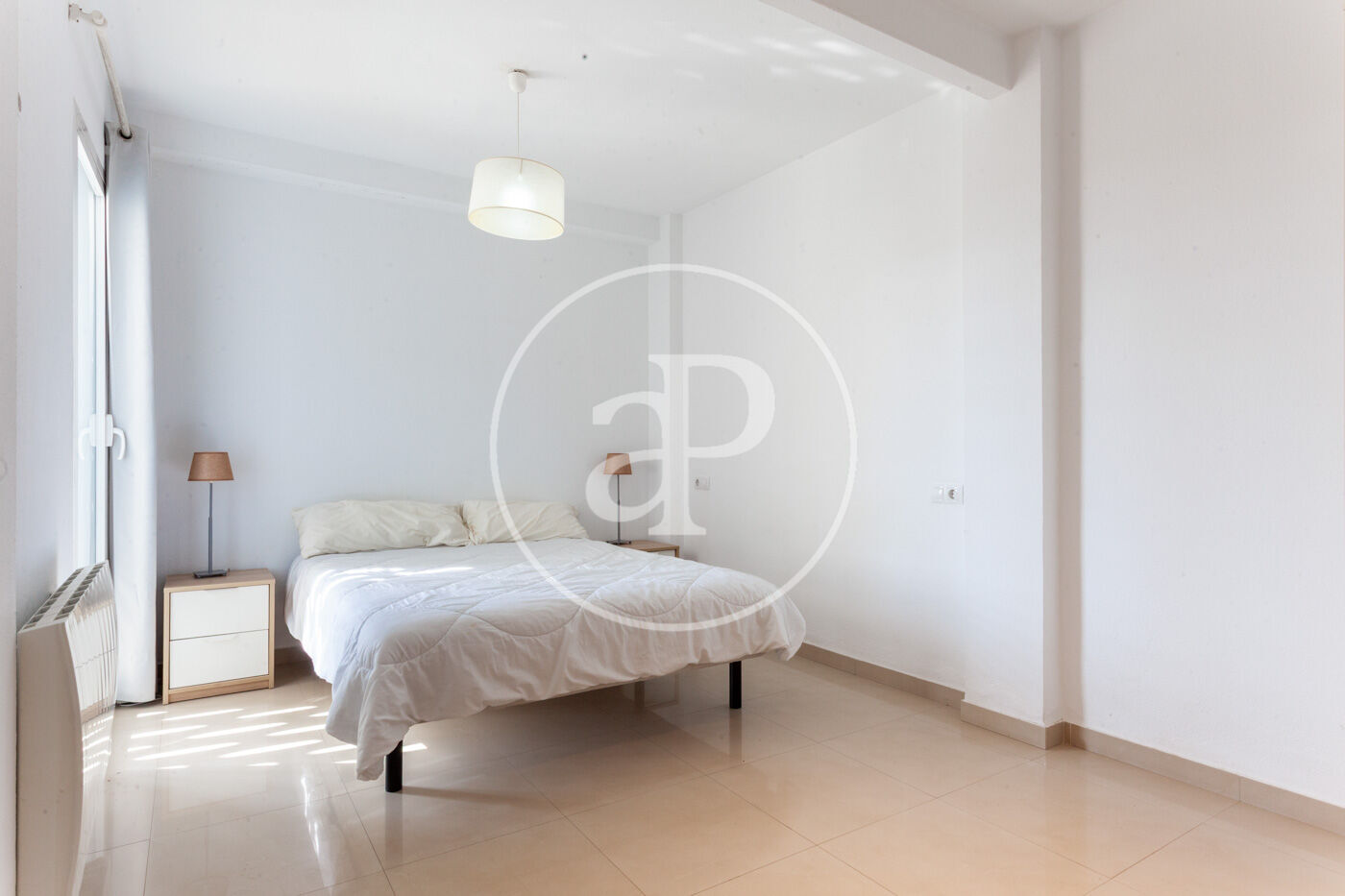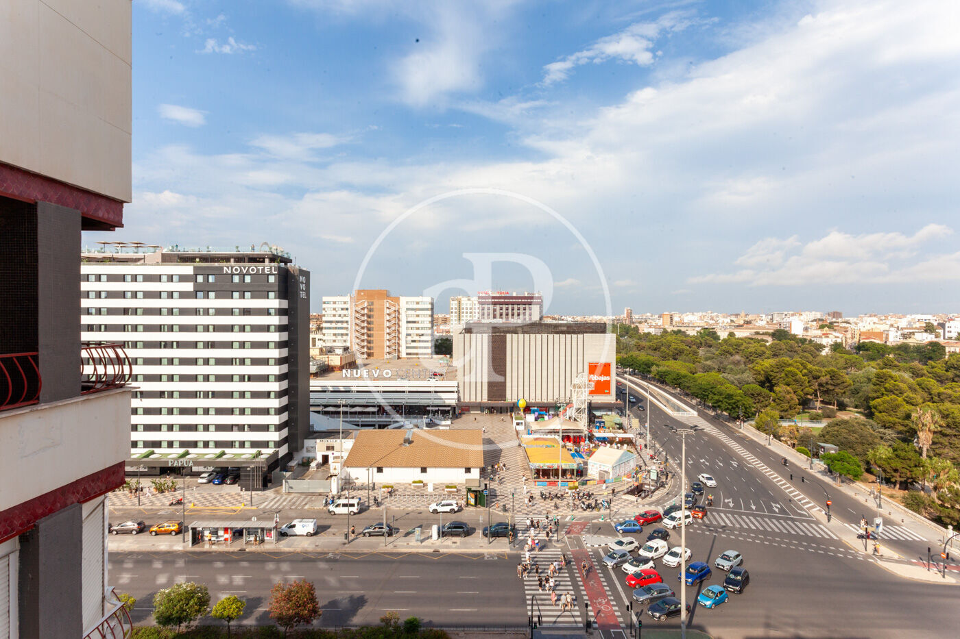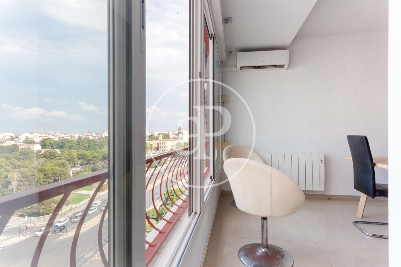 La vivienda se encuentra frente a los Jardines del Río Turia, cerca de la Universidad Europea y de la zona de Viveros. Está ubicada en un edificio residencial familiar que cuenta con servicio de portería, lo que aporta seguridad y facilita la recogida de envíos postales.