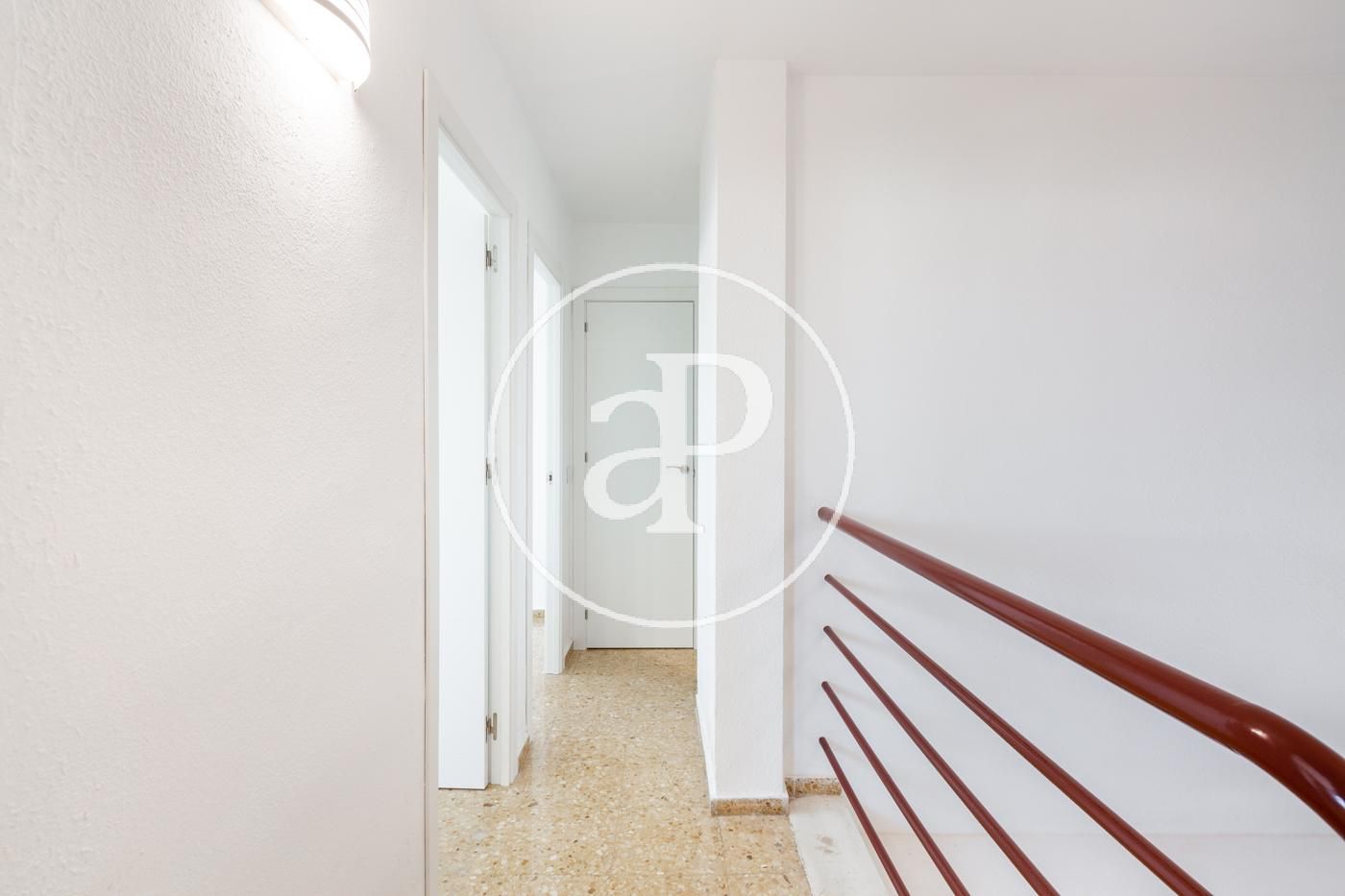 Cerca de los túneles de Vallvidriera a 10 minutos de Barcelona, encontramos esta espléndida adosada en el centro de Mirasol. Andando a un par de minutos encontrará la estación de Mirasol, el mercado, comercios y restauración, el colegio Catalunya, La Farga, el Casal de Mirasol y la futura piscina climatizada que terminará sus obras en menos de un año que os facilitará la vida creando un entorno ideal para la vida familiar. Los propietarios han invertido muchísimo tiempo y dinero en esta propiedad, otorgándole varios lujos muy poco comunes en este tipo de inmuebles. Comenzamos nuestra visita en esta casa de 273 mts² según catastro, tras atravesar el jardín. Solamente entrar, encontramos un recibidor con armarios hechos a medida, que nos conduce hacia los diferentes espacios comunes de esta casa, cocina comedor totalmente equipada, aseo de cortesía, salón comedor con chimenea a gas y una cristalera, también a medida, con puertas correderas de madera, cajones y la esquina acristalada. A pie de salón, está el jardín privado, con puerta directa a la comunidad con piscina y jardín donde disfrutar los veranos, que compartirá con tan sólo diez vecinos. En la primera planta, a la que se accede por una escalera con pared acristalada al salón, por lo cual la luz natural lo invade todo, llegamos a las dos habitaciones, el baño que comparten y la master suite, con vestidor y vistas al jardín. En la segunda planta, una habitación doble, con un salón privado, zona de trabajo, terraza y un baño completo con inesperado regalo de una sauna!! Bajando a la planta inferior, dos plazas de parking, un trastero, zona de lavandería con espacio de almacenaje y otra sorpresa más; una pequeña bodega con la temperatura  controlada. Todas las calidades de esta casa son premuim. Sistema de climatización frío calor, independiente en cada planta. Todos los muebles empotrados son de madera de sicomoro y mukari. Todas las aberturas con doble cristal y puente térmico. No dude en contactar con el equipo experto de aProperties Real Estate para la búsqueda de su nuevo hogar. Siempre cercanos, eficaces y profesionales en todo el proceso.