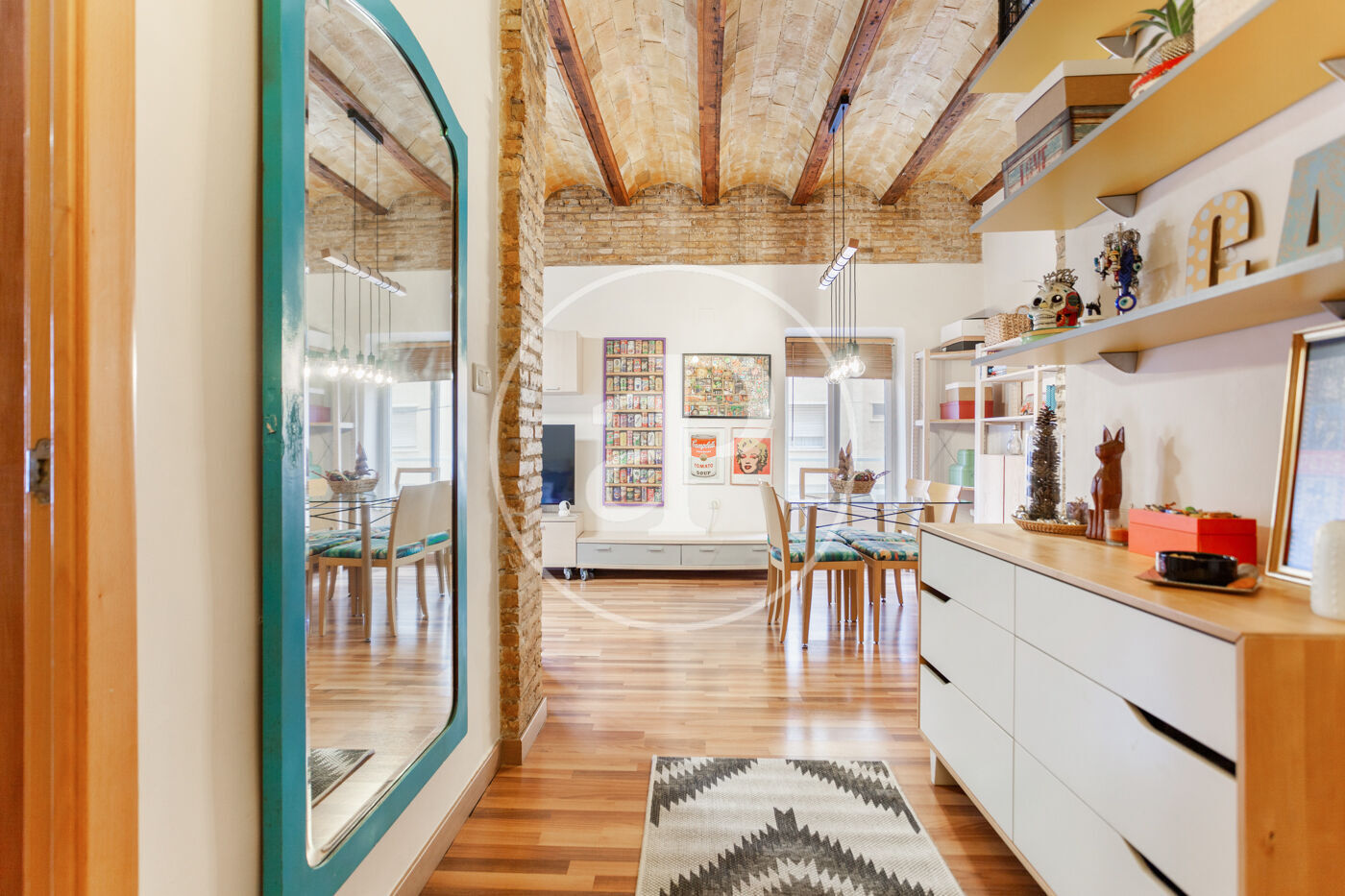 En el corazón del vibrante barrio del Born, en una finca señorial de 1843, se encuentra esta joya arquitectónica completamente reformada con acabados de lujo. Ubicado en una primera planta (segunda real) con acceso por una elegante escalera de piedra, típica de la época, este piso combina el encanto histórico con el confort moderno. La vivienda cuenta con una superficie útil de 111 m², distribuidos de manera funcional y luminosa, y consta de tres habitaciones y tres baños en suite, todos con acabados de alta gama. El amplio salón, bañado por luz natural gracias a su orientación sureste, se abre a un balcón que da al patio interior y a un pequeño jardín vecino, ofreciendo un ambiente soleado y silencioso, perfecto para disfrutar de la tranquilidad de la zona. La cocina americana, integrada en el espacio, está completamente equipada con electrodomésticos de alta calidad y mobiliario de diseño, todo pensado para maximizar el confort. En la zona de noche, además de las habitaciones, cada una con baño privado y duchas amplias, se destaca el ambiente mágico y sereno del piso, rodeado de elementos históricos que aportan un carácter único. El piso dispone de aire acondicionado por conductos en toda la vivienda y existe la posibilidad de adquirirlo completamente amueblado, listo para entrar a vivir. Una oportunidad única para quienes buscan una residencia de lujo, con carácter histórico, en una de las zonas más emblemáticas y demandadas de Barcelona, rodeada de historia, tranquilidad y belleza.
