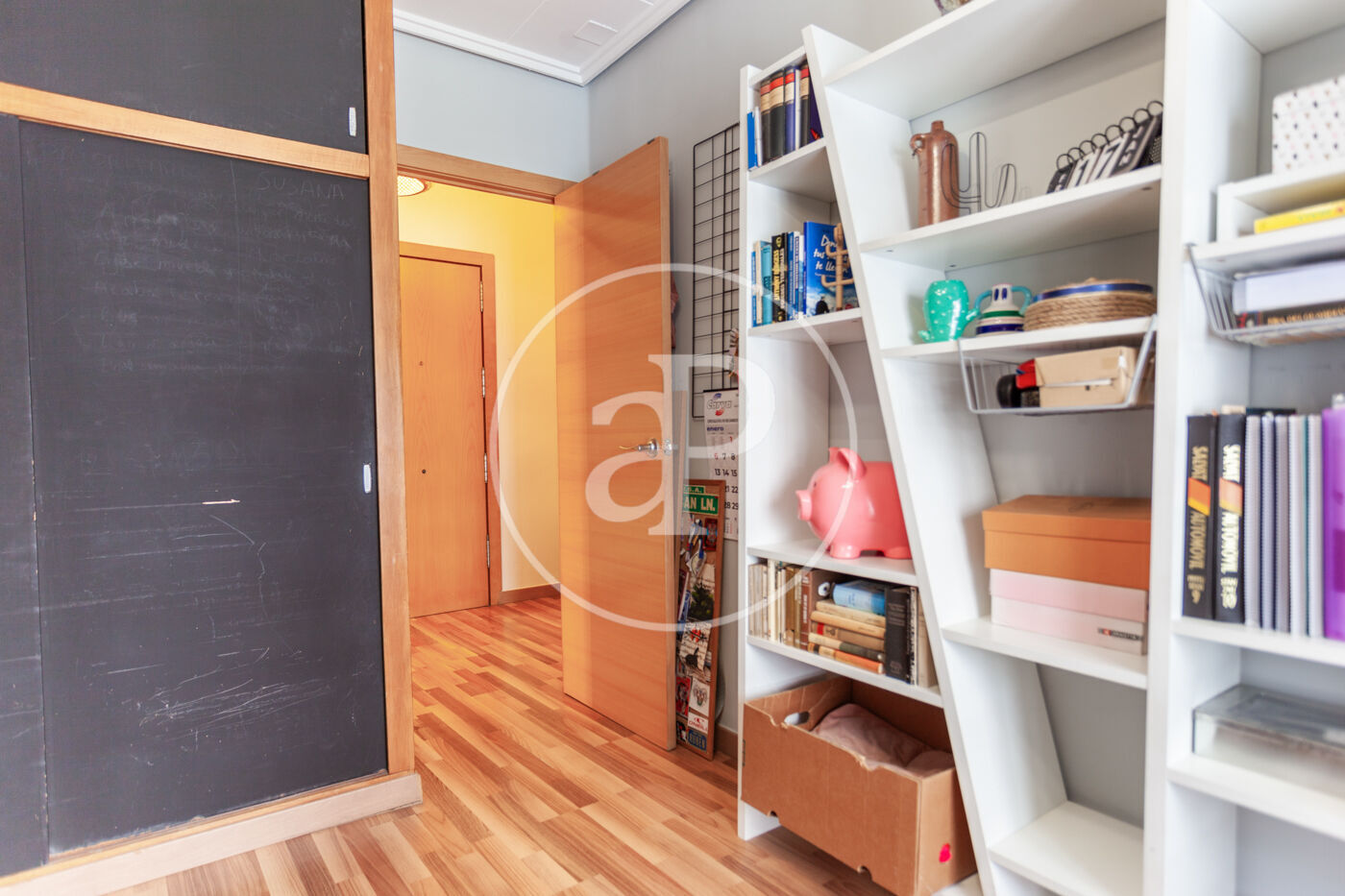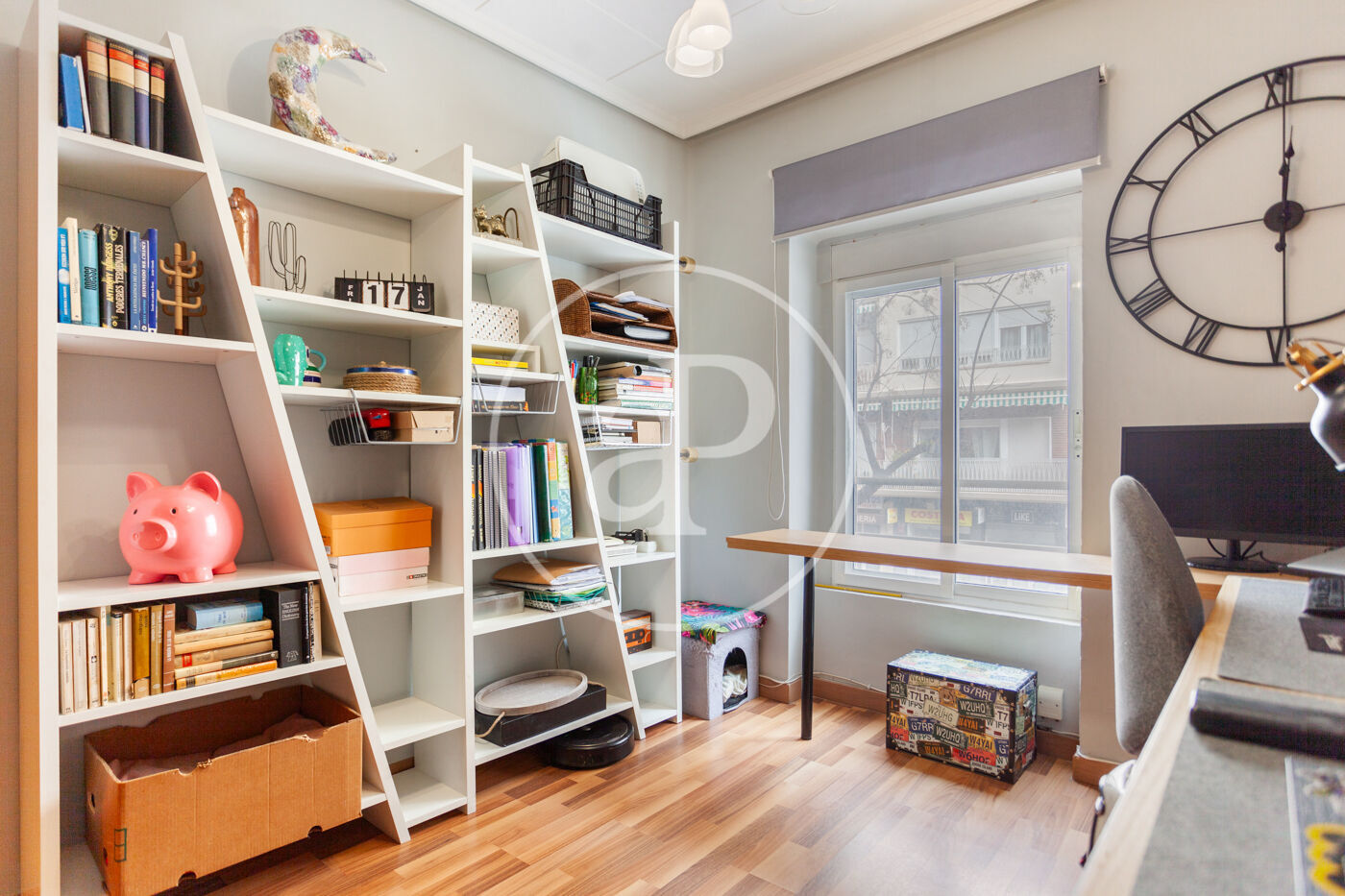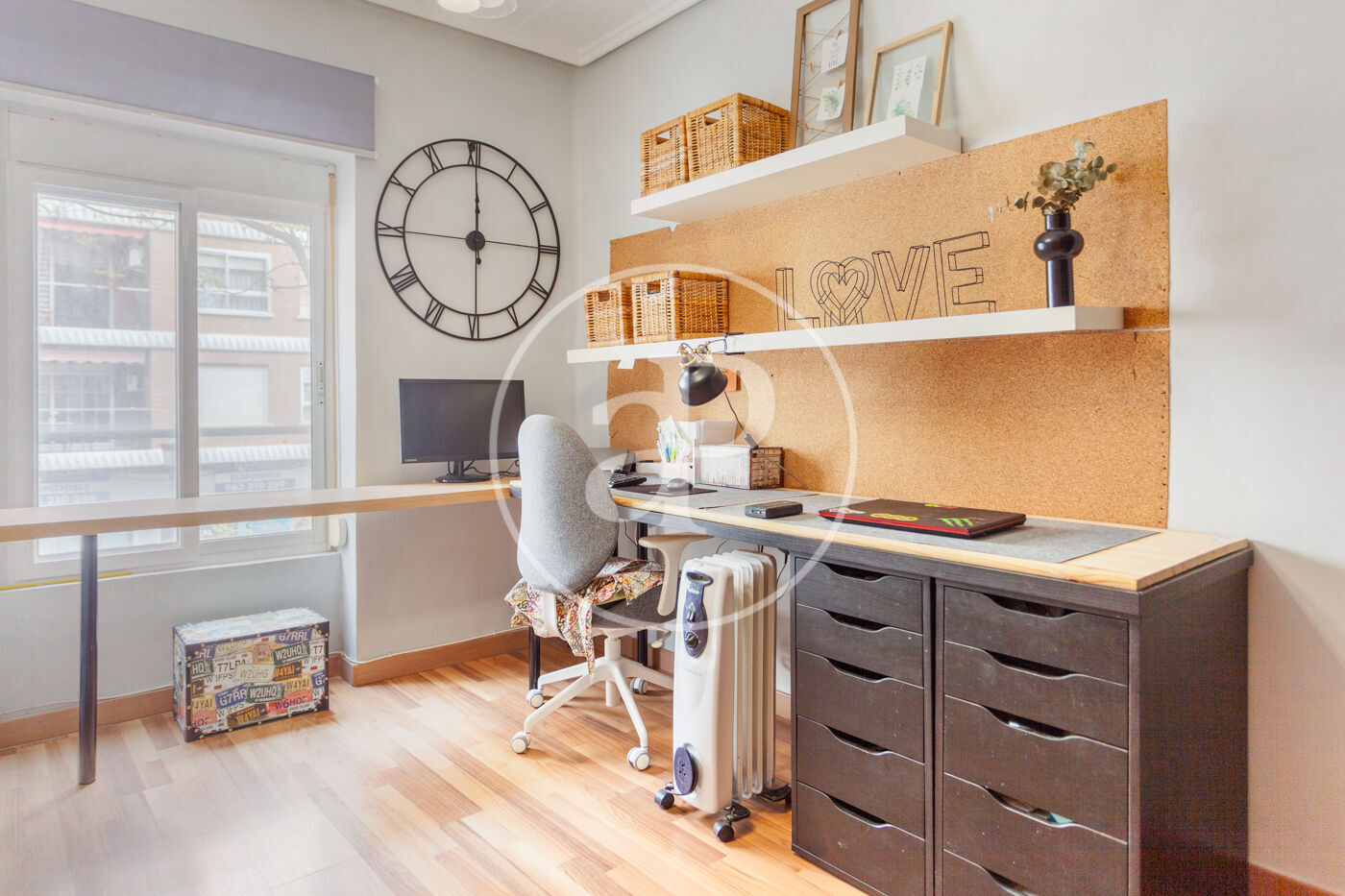 El apartamento se encuentra en el primer piso, sin ascensor, pero con fácil acceso. Al ser una propiedad en esquina, disfruta de una gran cantidad de luz natural que entra por sus ventanas, ya que cada habitación tiene ventana exterior. El apartamento tiene un dormitorio principal espacioso con armario para un almacenamiento adecuado, un segundo dormitorio convertido en oficina de trabajo, ideal para quienes trabajen desde casa, y un tercer dormitorio con literas de dos niveles, perfecto para niños o huéspedes.