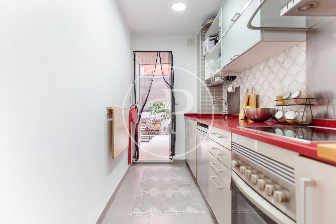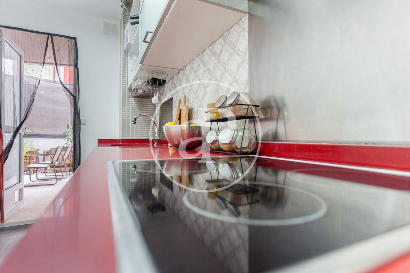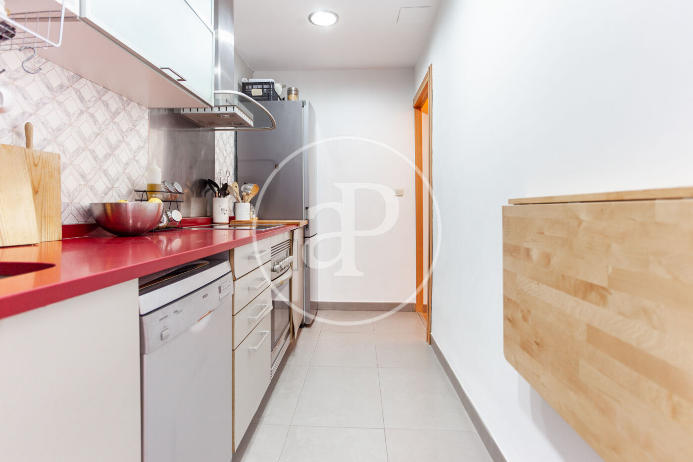 La cocina independiente está totalmente equipada con horno, lavavajillas, frigorífico y más. Además, tiene acceso a una terraza privada interior con mesa de café y cuatro sillas, espacio de almacenamiento adicional y lavadora. El baño cuenta con ducha y dos lavabos El salón cuenta con un cómodo sofá, televisión de pantalla plana y una mesa de comedor para cuatro personas. Este apartamento de 3 habitaciones y 1 baño, con 110 m², es perfecto para una pareja que trabaje desde casa y busque un espacio acogedor y funcional.