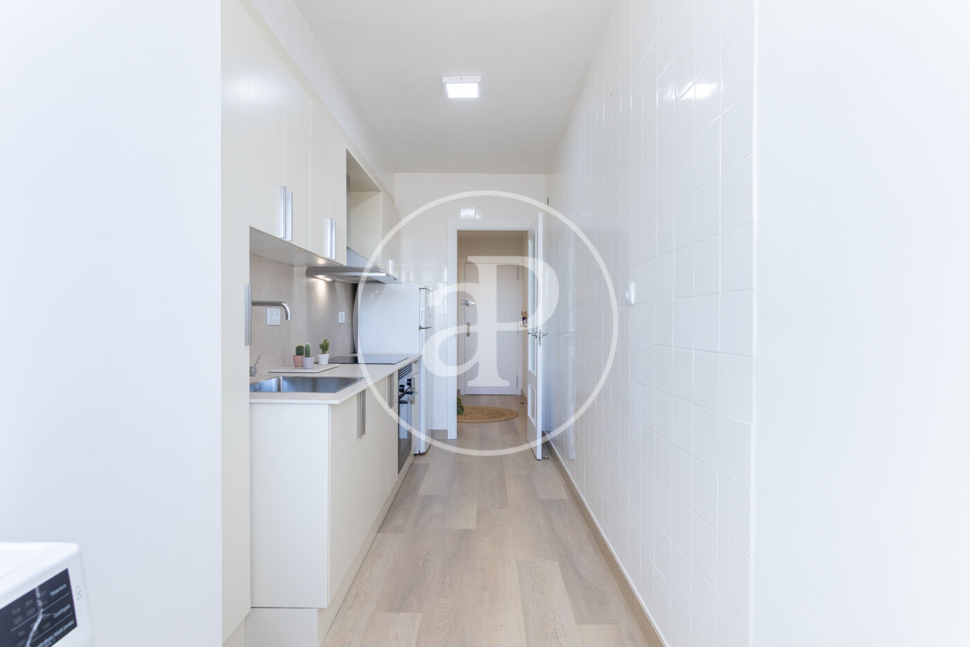 El salón-comedor, también completamente amueblado, ofrece agradables vistas a la calle y cuenta con un buen balcón. La cocina, muy bien aprovechada y totalmente reformada, está equipada con electrodomésticos de alta gama y destaca por su diseño elegante y funcional, creando un ambiente acogedor.