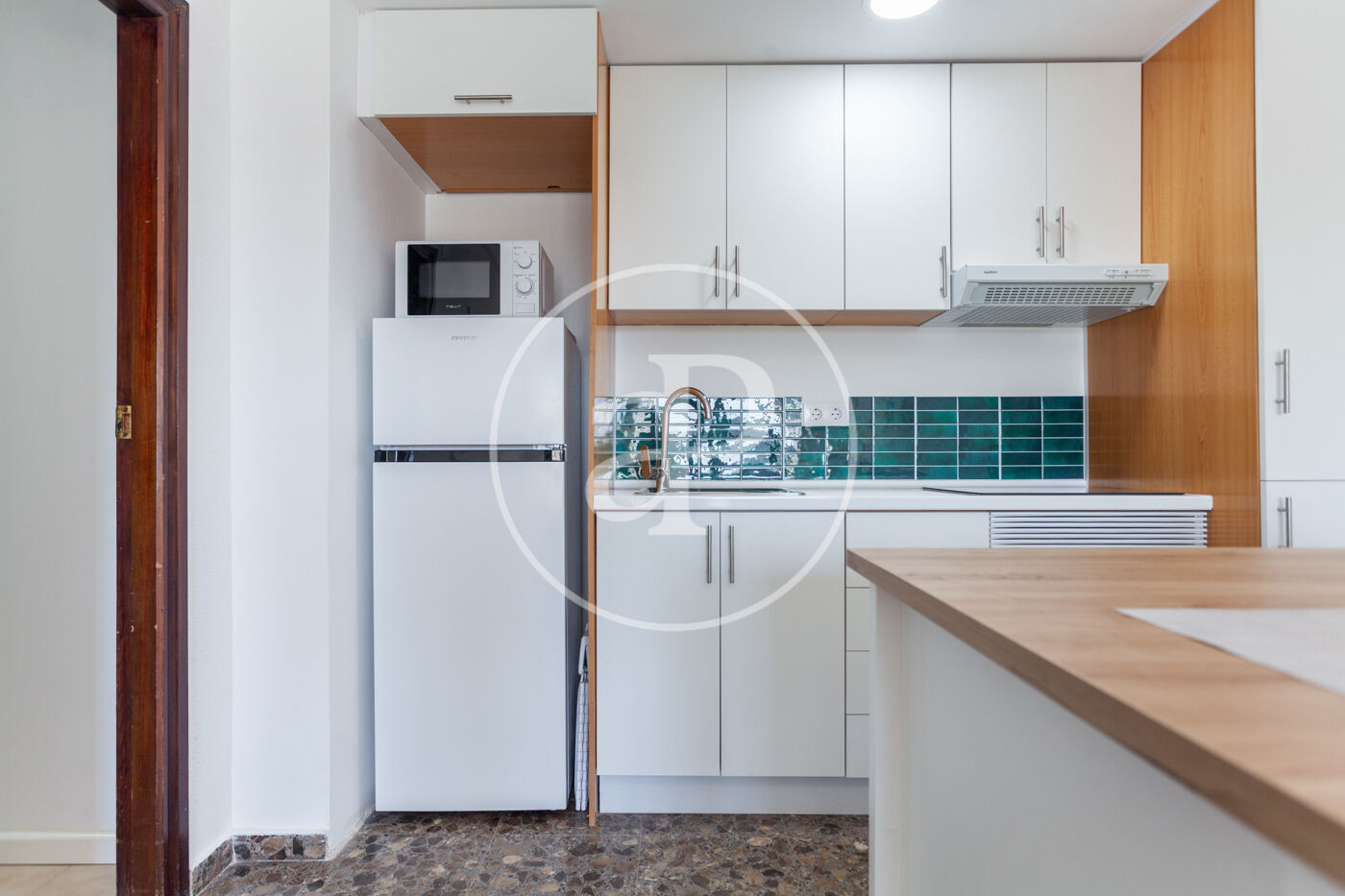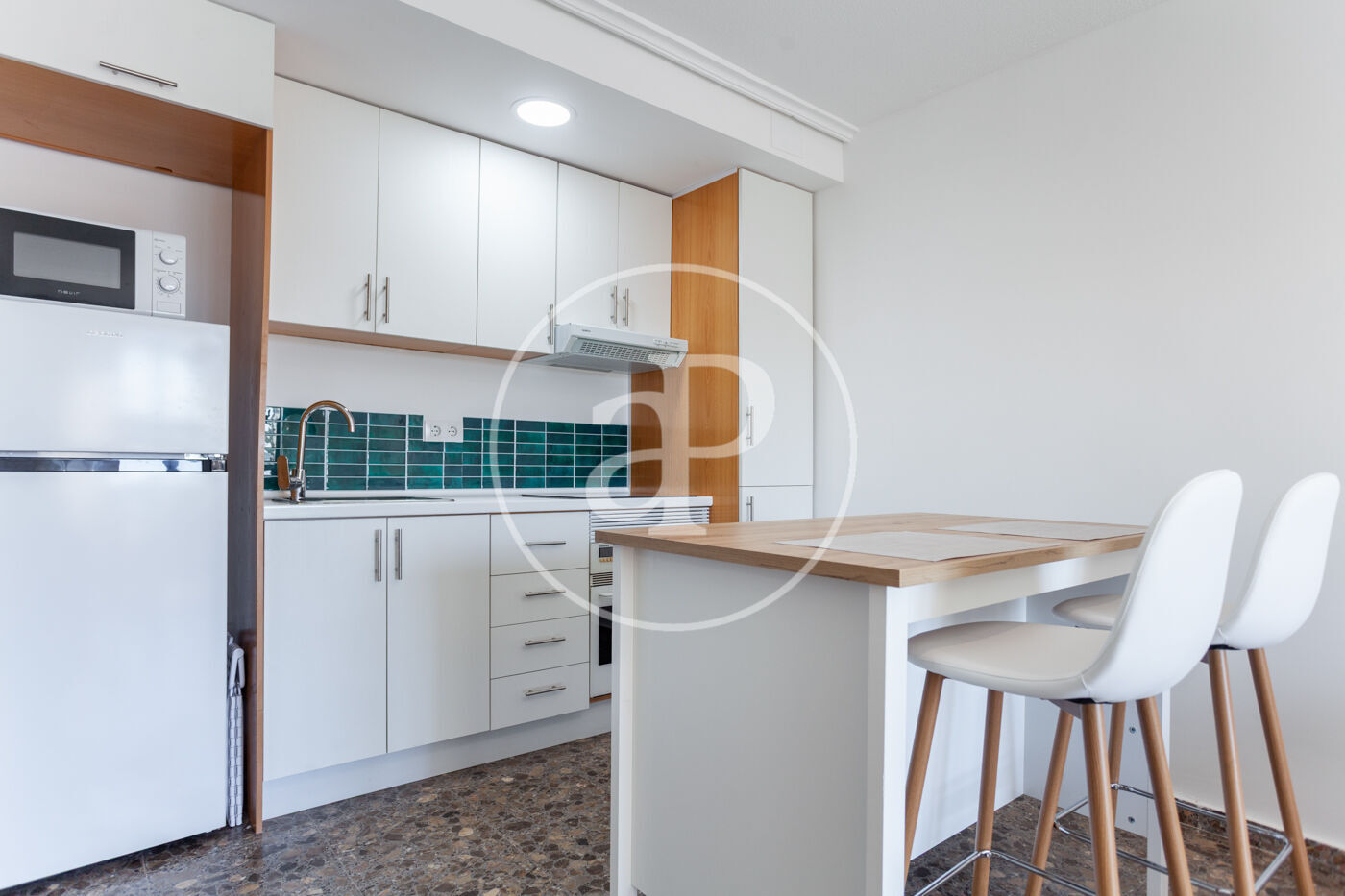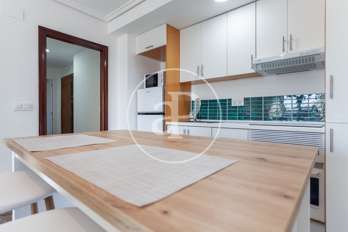 El salón comedor, totalmente amueblado, en una zona muy tranquila. La cocina, estilo americana, integrada con el salón comedor, equipada con electrodomésticos y vajilla, presenta un diseño elegante y minimalista, creando un ambiente acogedor y funcional.