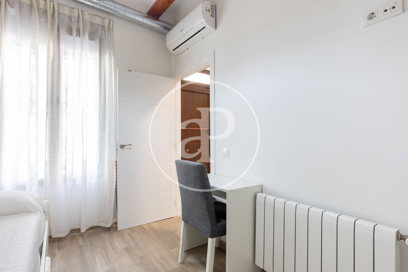 La vivienda dispone de tres dormitorios pensados para el descanso, todos con armarios empotrados y una atmósfera serena. Cuenta, además, con dos baños de estilo contemporáneo, con acabados de alta calidad; uno de ellos está adaptado para personas con movilidad reducida.