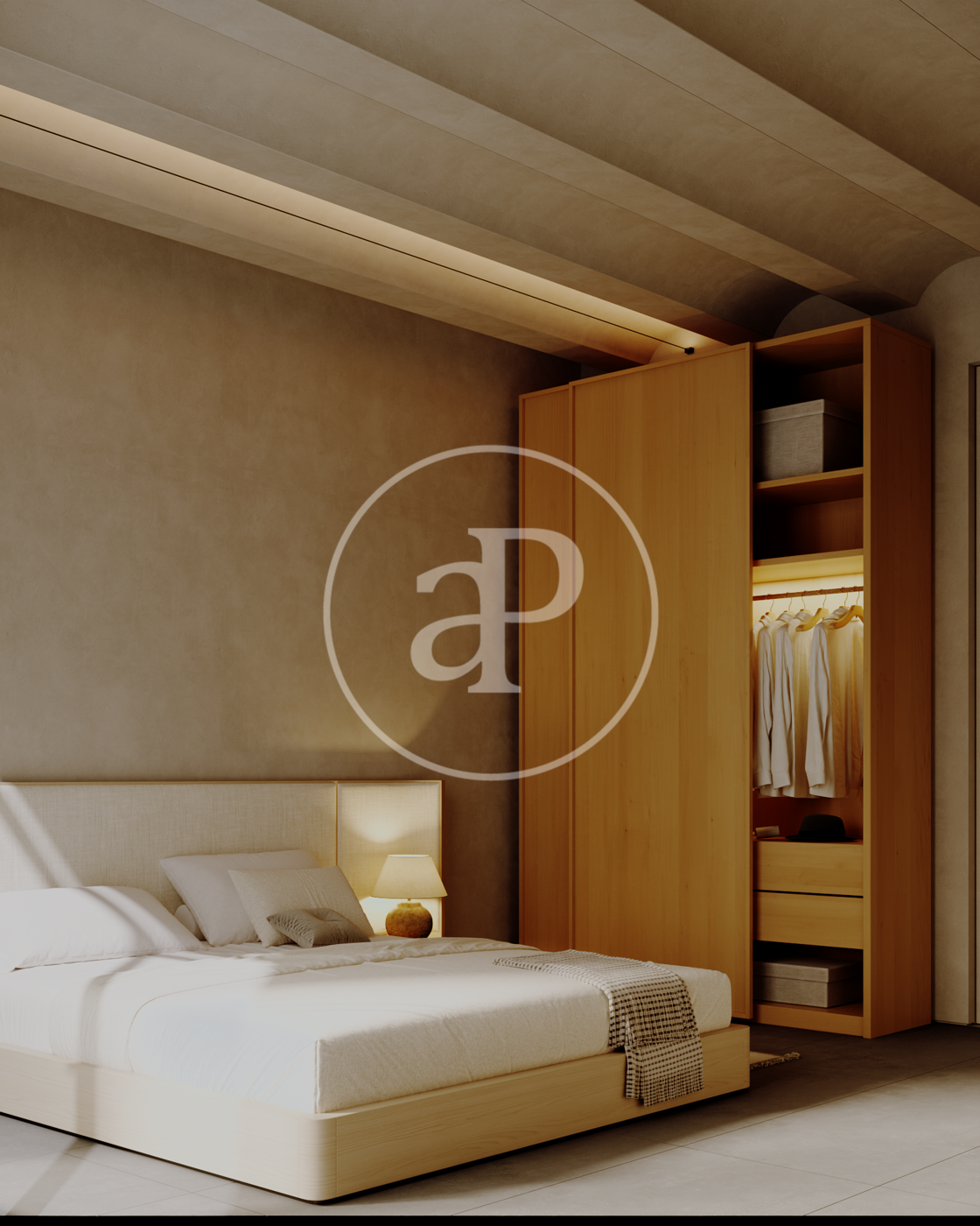 El interiorismo combina materiales de alta gama , incorporando cerámica inspirada en los emblemáticos azulejos de la cultura valenciana, junto con acabados actuales como el acero inoxidable y el vidrio en cocina y baños. Las paredes, en tonos neutros y cálidos, aportan luminosidad y crean una atmósfera equilibrada y sofisticada.