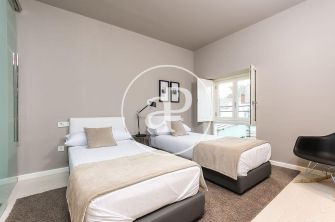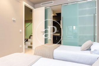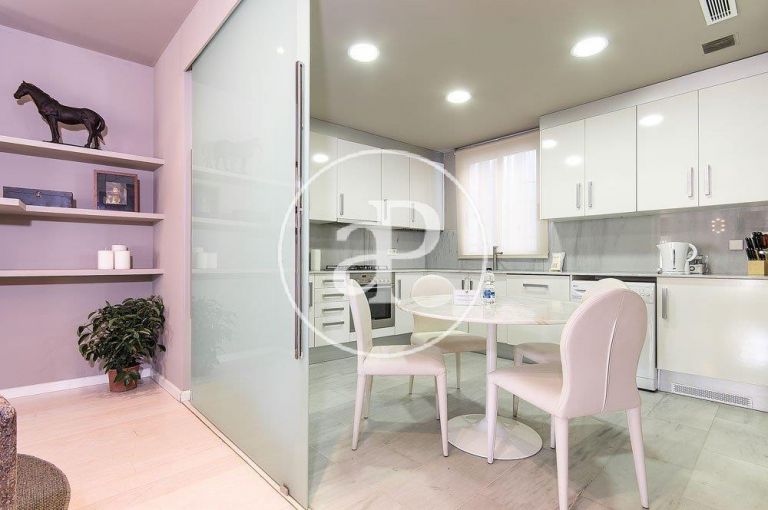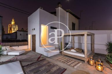 El inmueble se encuentra en un edificio con ascensor de 3 plantas con una vivienda por planta. Fue refaccionado íntegramente en el año 2005, en la planta inferior cuenta con 3 dormitorios y 3 baños, salón comedor y una cocina individual que puede transformarse en americana si se desplazan los muros de cristal que la separan del salon, en la planta superior se encuentra una hermosa terraza con vistas panorámicas a todo el casco histórico de Valencia.