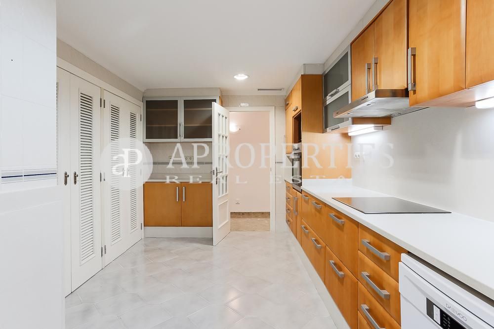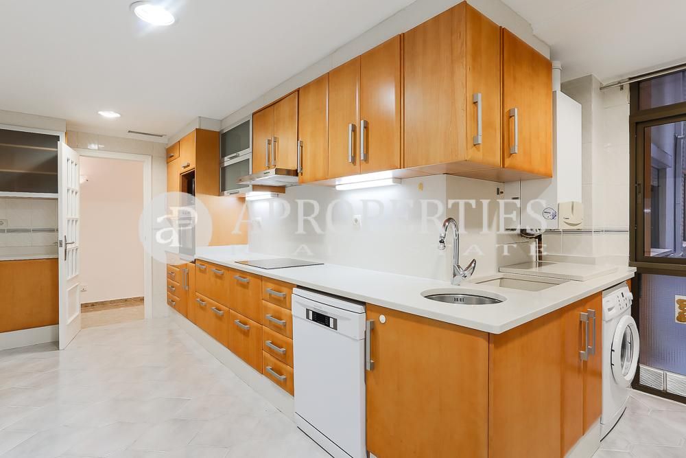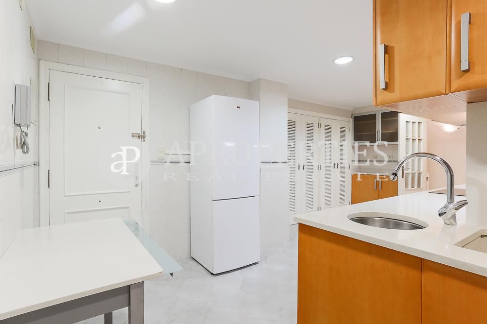 La entrada principal da la bienvenida mediante un estupendo recibidor con muchos armarios vestidos que hacen de distribución entre un gran salón-comedor y la cocina y zona de noche. El gran salón-comedor es muy luminoso, cuenta con unos 50 m² y vistas a Reino de Valencia. La cocina esta en buenísimo estado con todos los electrodomésticos a estrenar, dos grandes despensas, zona de aguas y entrada de servicio a la vivienda en la misma cocina.