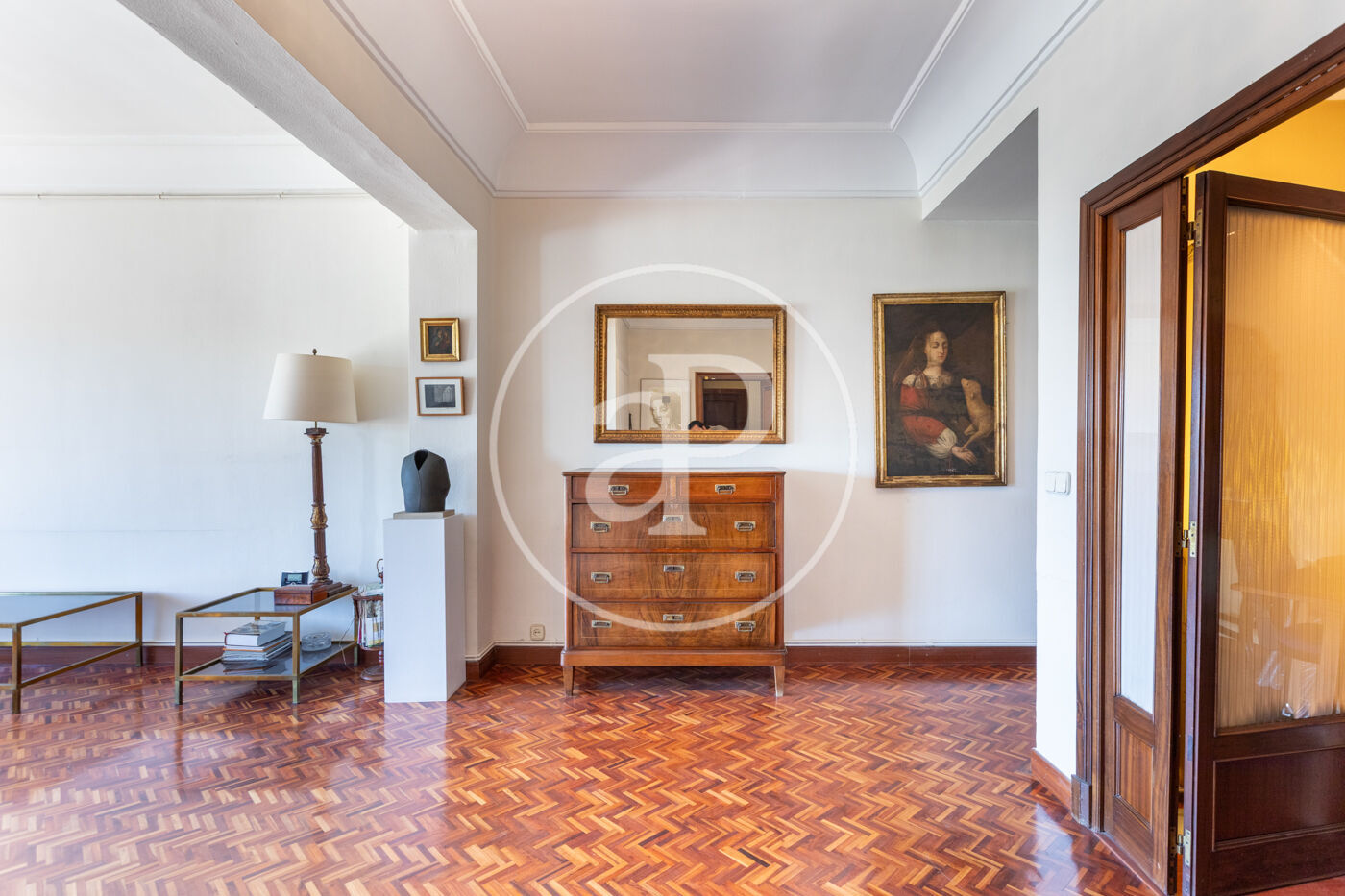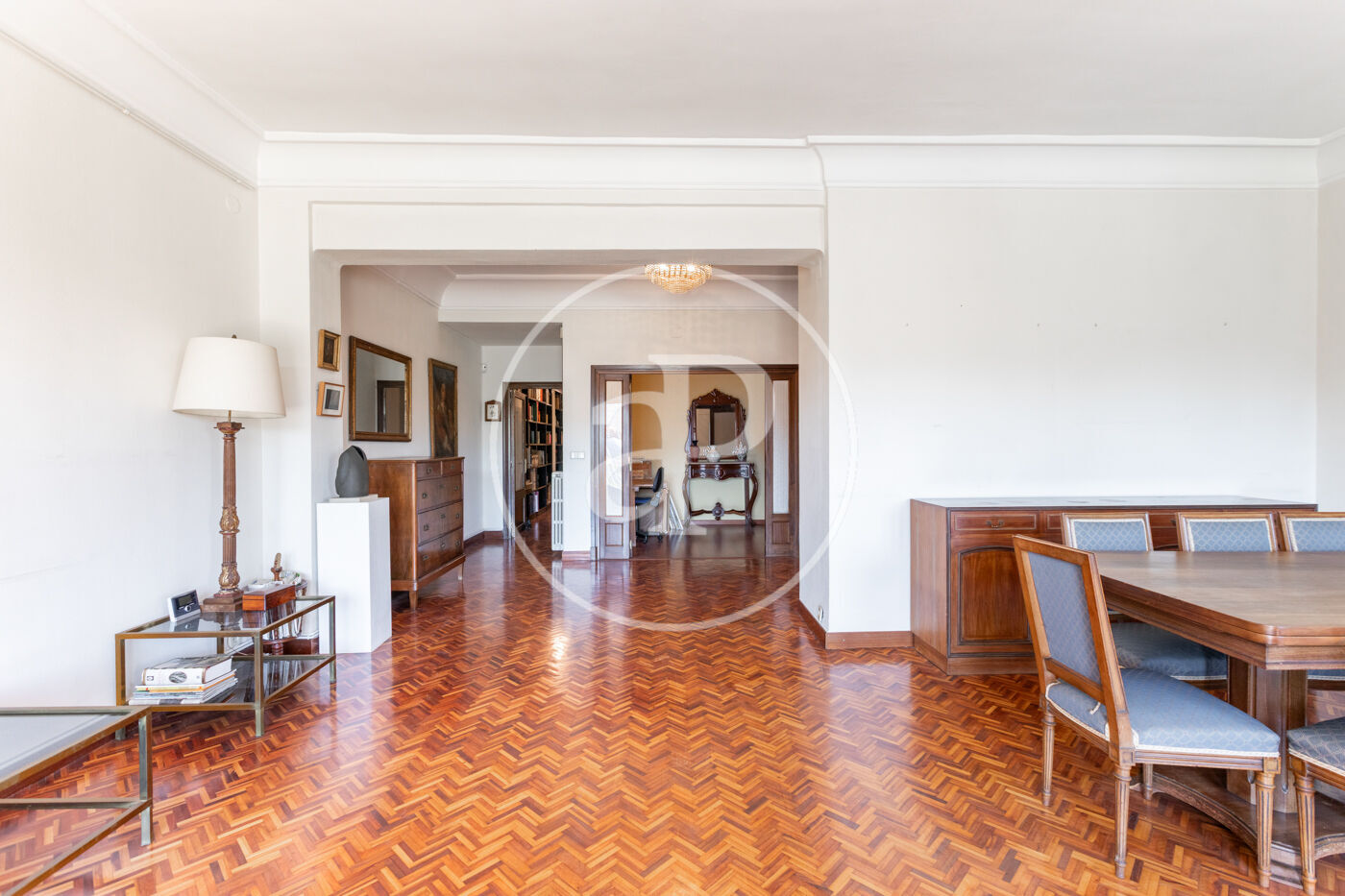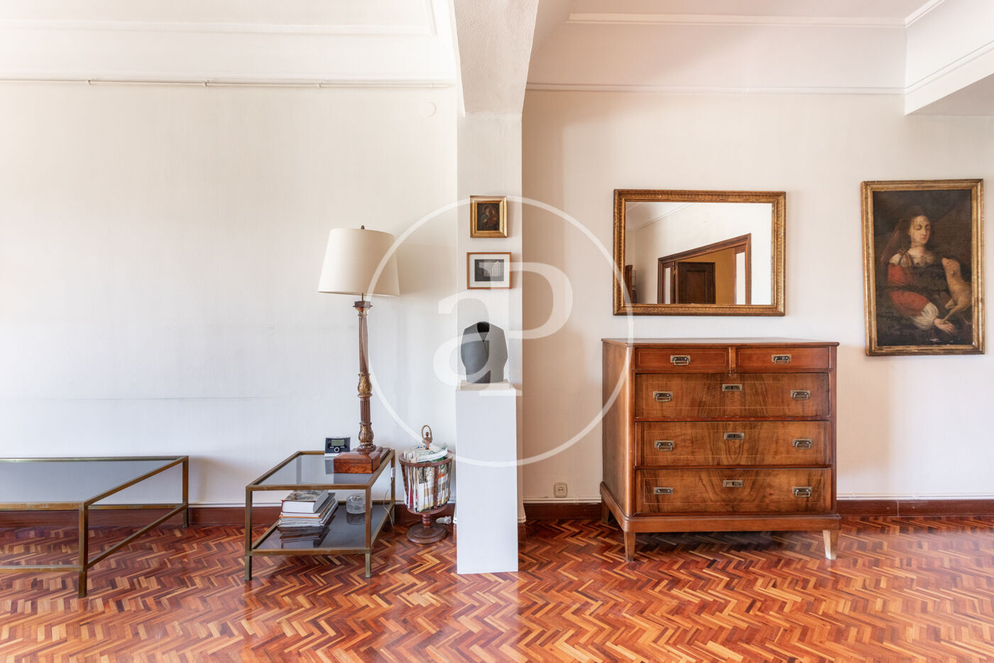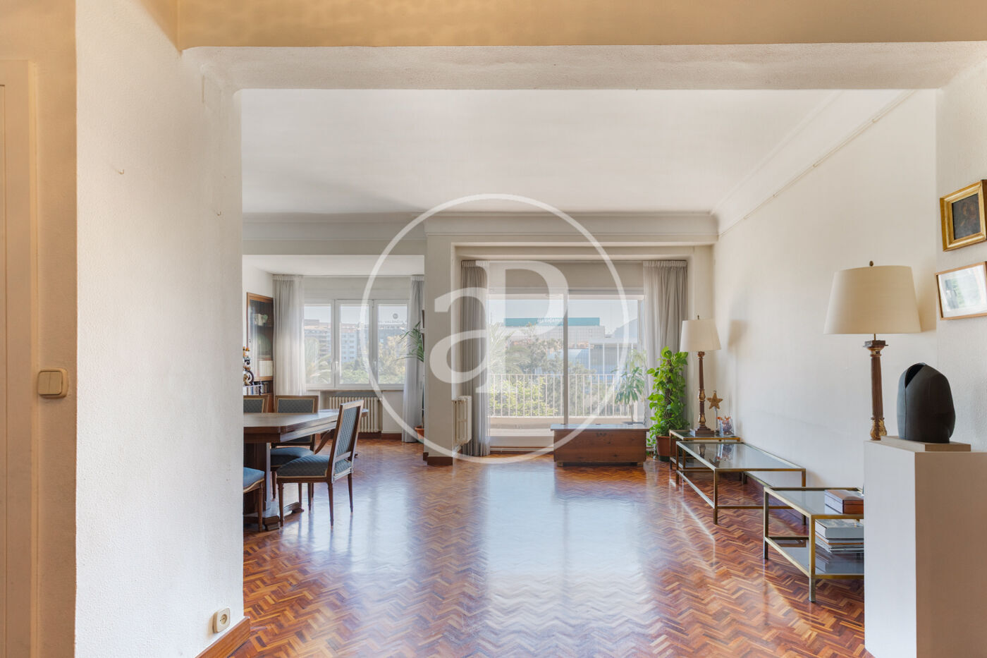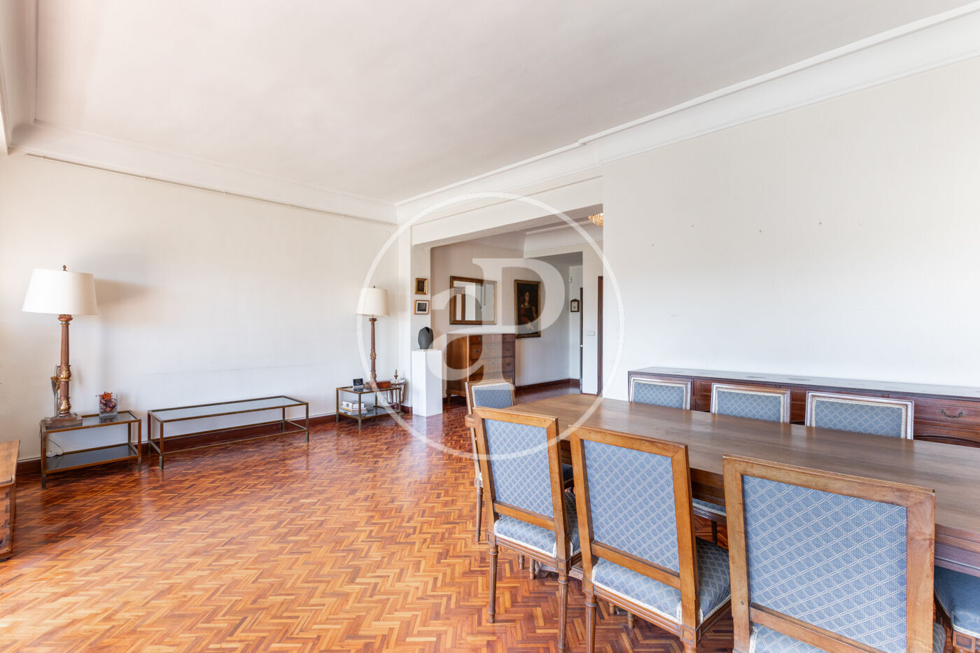 AProperties tiene el placer de presentarles este espectacular piso parcialmente reformado, con terraza, plaza de garaje y unas impresionantes vistas al cauce del río Turia y al Palau de la Música.