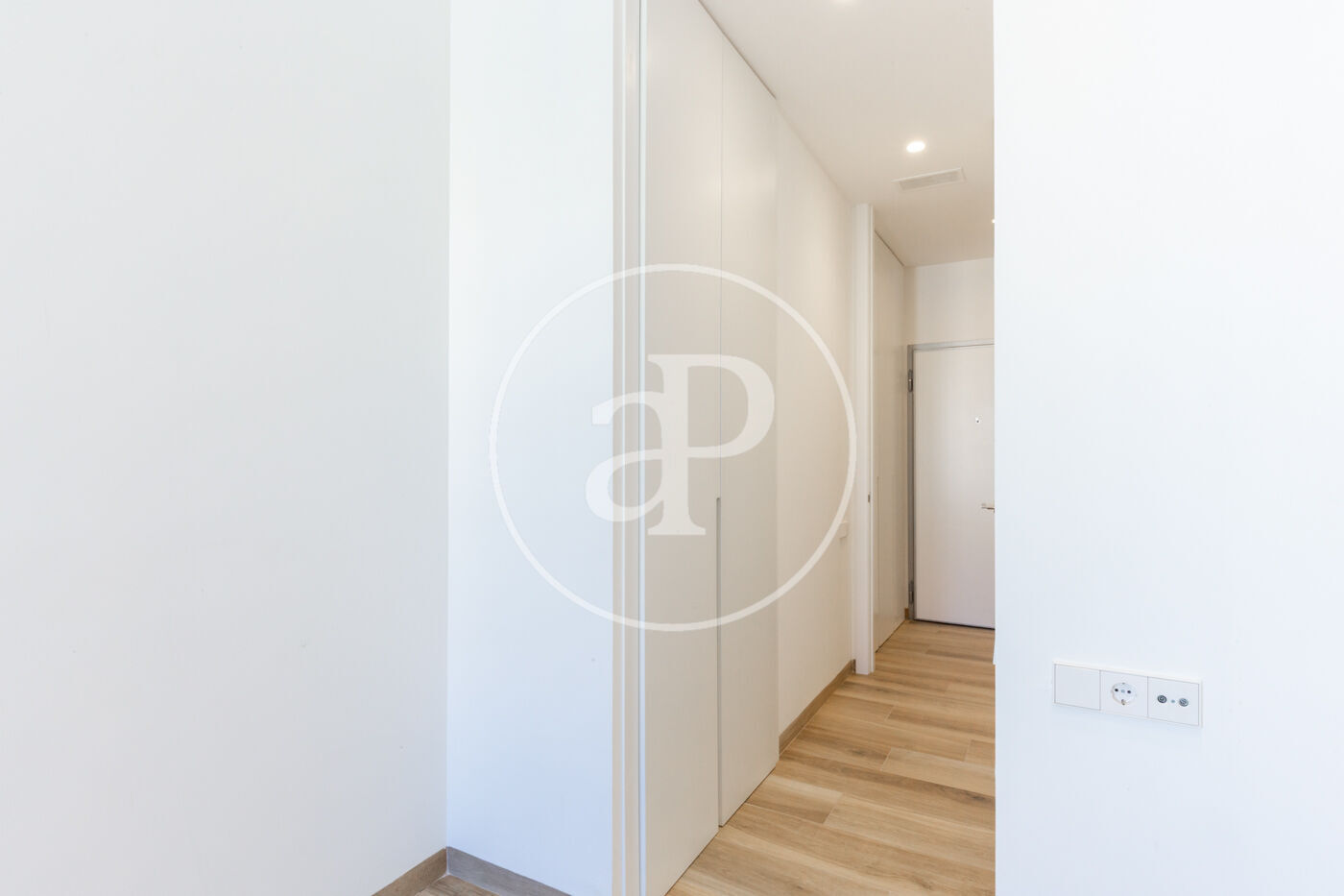 En el pasillo se ha integrado una práctica zona de lavandería, equipada con lavadora y secadora.