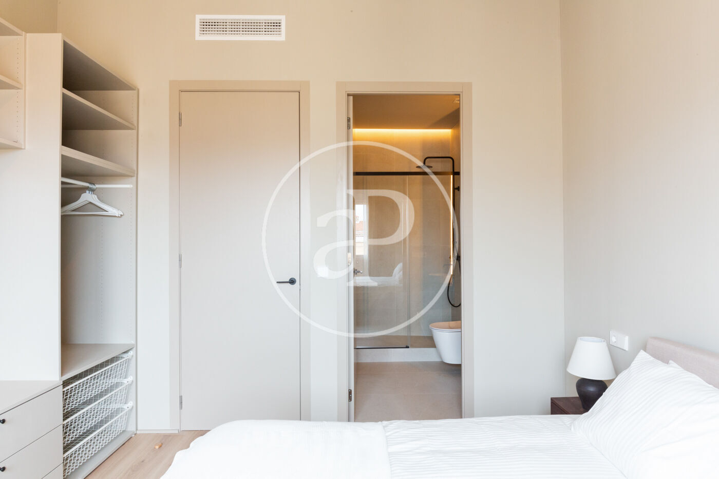 El ático dispone de tres dormitorios dobles, dos de ellos en suite, ofreciendo privacidad y confort para todos los miembros del hogar. Cada habitación ha sido diseñada con mimo, creando espacios cálidos y funcionales para el descanso diario.