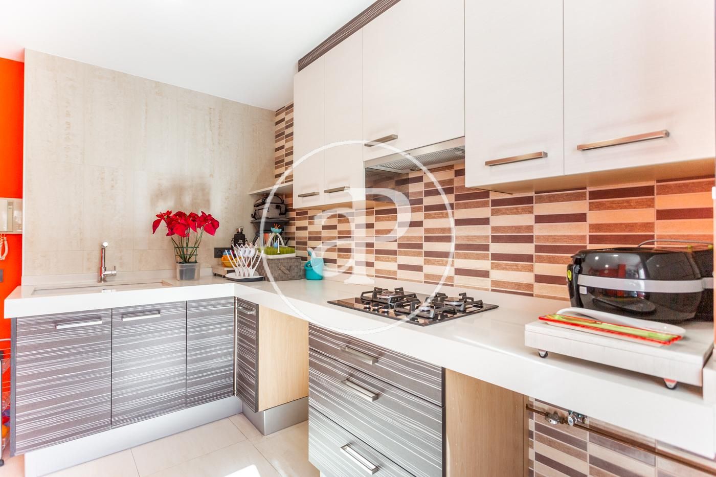 La propiedad se accede desde el gran salón-comedor, equipado con radiadores de gas y un eficiente aparato de aire acondicionado donde nos encontramos con una barra bar integrada en salón. La vivienda dispone de tres dormitorios, ambos con armarios empotrados, y un vestidor. La misma dispone también de otro cuarto de baño completo y otro baño simple, una cocina amplia y luminosa independiente y totalmente equipada.