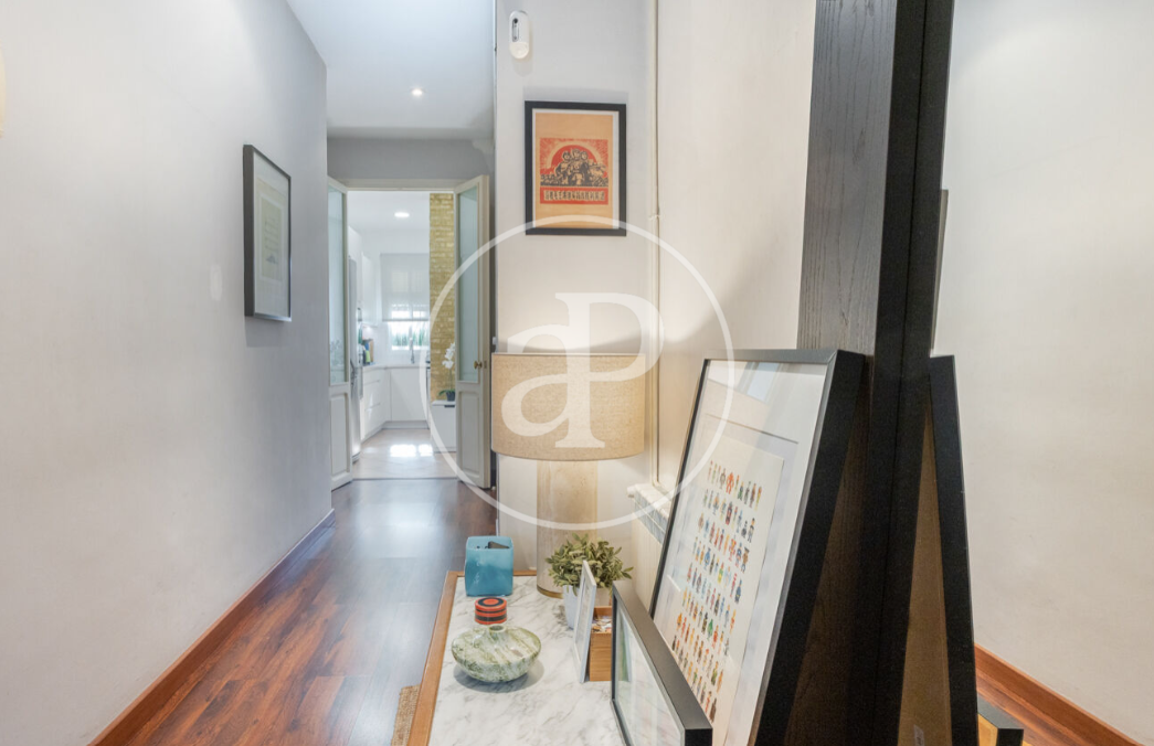 El piso cuenta con un hermoso recibidor que a su vez distribuye el acceso a toda la vivienda. En él encontramos un gran armario empotrado y la entrada a una primera habitación individual, que da a la calle y dispone de un pequeño armario empotrado. Junto a ella se encuentra el salón-comedor, con una bonita arcada, y la habitación principal, de gran tamaño, con acceso directo al baño y entrada a la cocina.