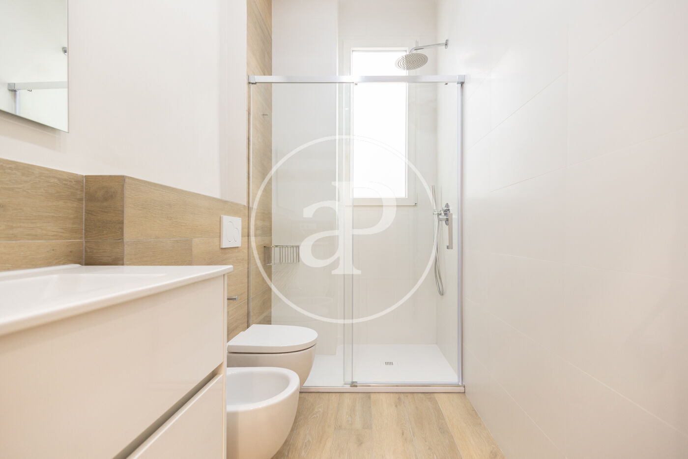 aProperties les presenta este espacioso y luminoso piso, que se divide en un hall muy espacioso, tres dormitorios, dos baños completos, salón comedor, cocina y galería. Los tres dormitorios son de un tamaño doble muy grandes todos amueblados con cama, mesitas, armario, mesa de escritorio y silla de despacho. Dos de ellos son exteriores con gran luminosidad y uno de ellos con salida a un balcón de tres metros cuadrados. El tercer dormitorio, aunque sea interior es luminoso además de ser de tamaño doble. Los baños están ubicados fuera de los dormitorios, son completos con ducha. La cocina es cerrada y está equipada, con nevera, horno, campana extractora y cocina de cuatro fuegos con gas ciudad. Tiene un gran tamaño y esta amueblada con armarios de gran capacidad, mesa y cuatro sillas. Desde la cocina accedemos a la galería, en la cual encontramos una pila y la lavadora. El salón comedor también es exterior con gran luminosidad y amueblado con sofá chaise longue, mueble de pared para la televisión y televisión. También es muy espacioso como el resto de las habitaciones. El edificio está provisto de dos ascensores, rampa para personas con movilidad reducida y portero en horario diurno. Se ubica en la avenida del Oeste a un paso del Mercado Central y con todos los servicios a su alrededor, supermercados, farmacias, restaurantes y tiendas de todo tipo. Las paradas de metro más cercanas son Xàtiva y Àngel Guimerà. También tiene paradas de autobús que conectan con toda la ciudad. Ideal para estudiantes de la Universidad Católica o familias que necesiten mucho espacio y quieren residir en el centro de la ciudad. Si quiere visitar la propiedad o pedir más información, no dude en contactar. Estaremos encantados de atenderle.