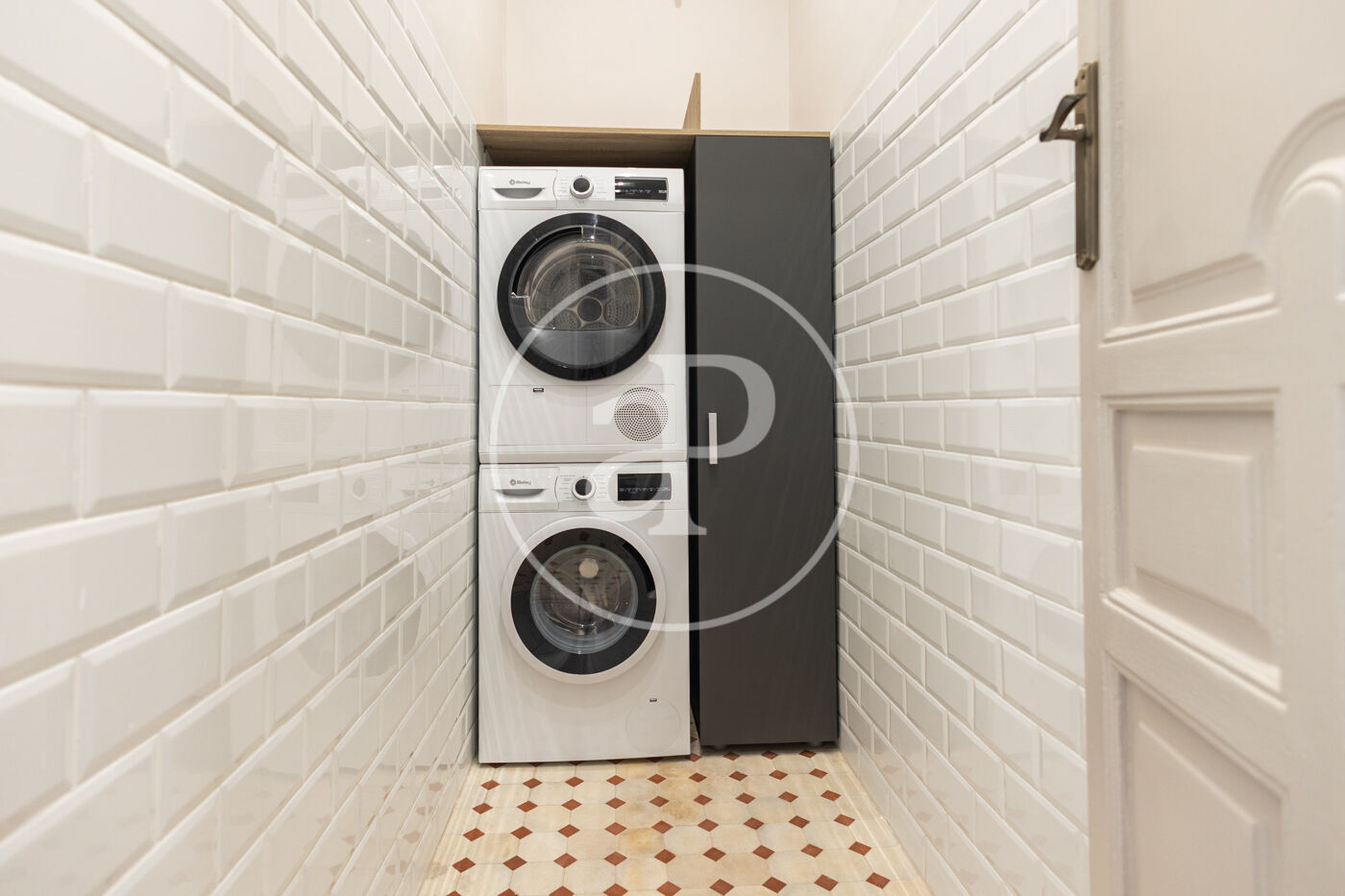 El piso cuenta con dos baños exquisitamente diseñados, equipados con modernas instalaciones y elegantes accesorios. El dormitorio principal, situado estratégicamente en el dúplex, ofrece privacidad y lujo, con un baño en suite que incluye una preciosa ducha para relajarse.