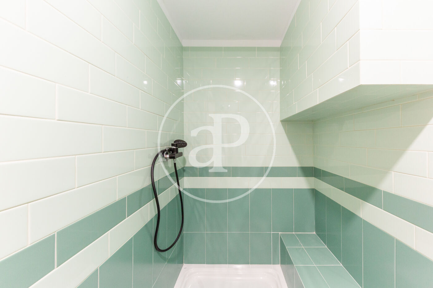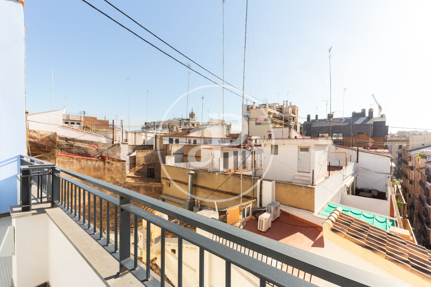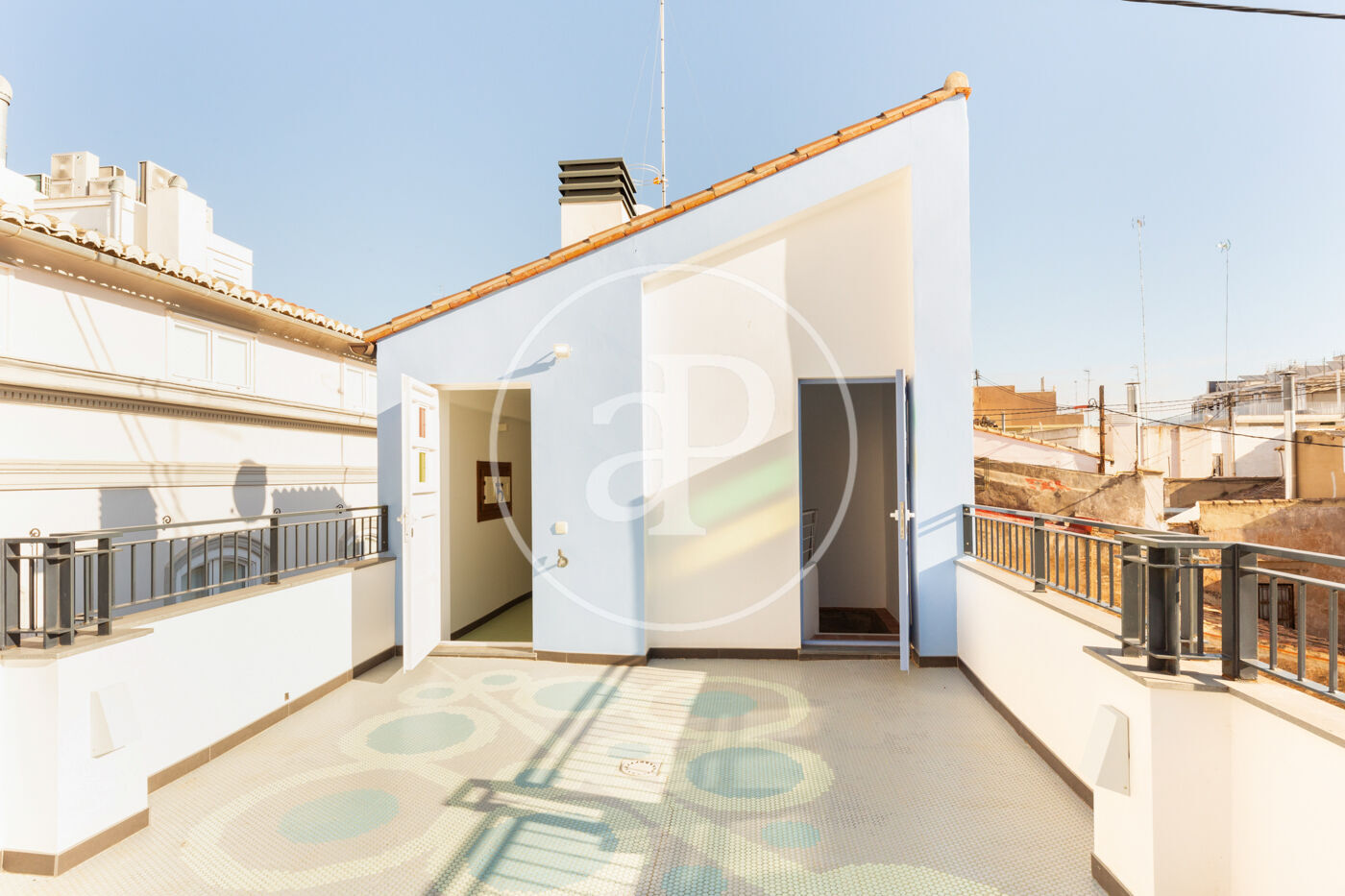El edificio consta de: planta baja y semisótano terciario/taller/comercial, de 30+30 m2 con baño, planta entresuelo vivienda-apartamento de 23 m2 con una habitación, cocina y baño, planta primera de una vivienda de 62 m2 con estar y cocina, dos habitaciones y dos baños, planta segunda, tercera y cuarta con una vivienda cada planta de 60m2 con estar y cocina, dos habitaciones y dos baños, y planta 5ª casetón de ascensor y escalera, 2 terrazas transitables de 30 m2 + 30 m2 (una técnica y una de comunidad para uso de estar y solárium). Todas las plantas disponen de ascensor y la antigua escalera típica de la arquitectura valenciana. La dimensión de la parcela es de 73 m2 de superficie.