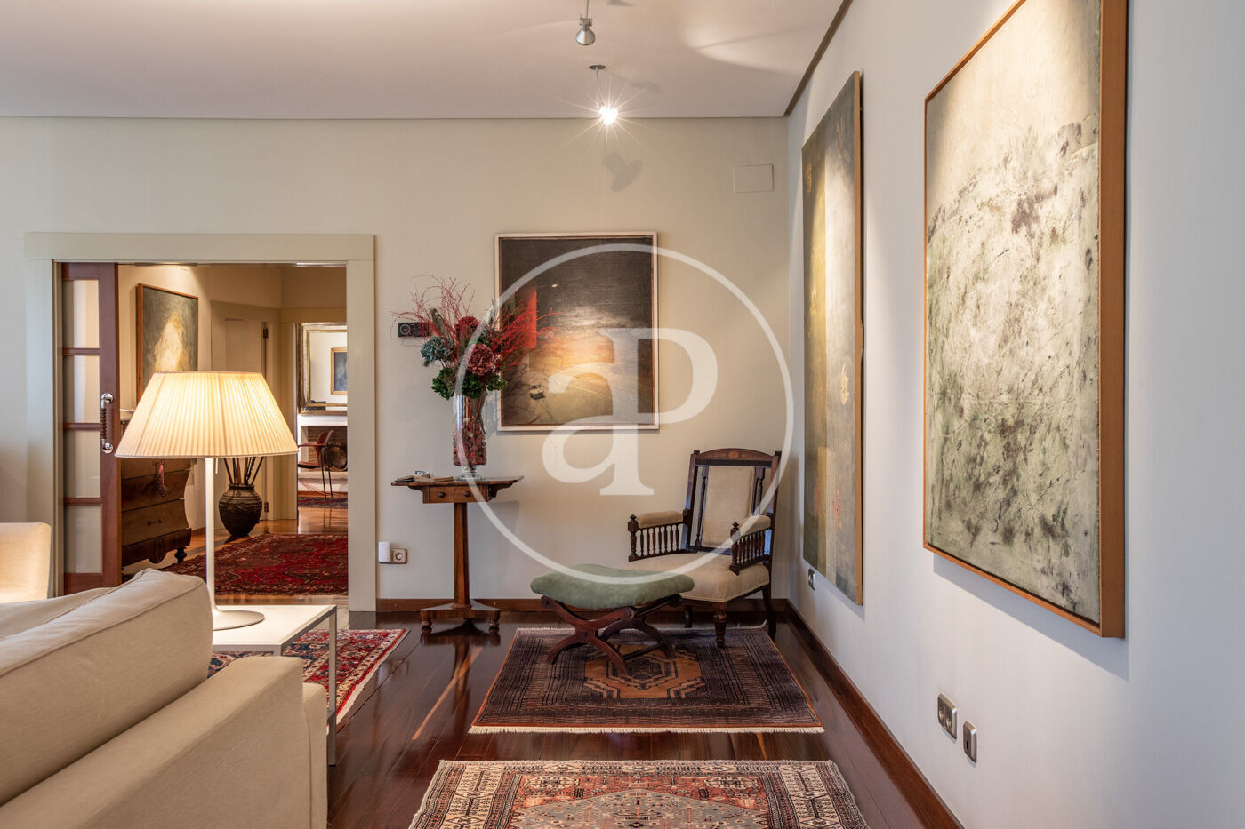 La propiedad presenta un excelente estado de conservación y cuenta con todas las comodidades, entre ellas, calefacción zonificada, aire acondicionado por conductos, baños reformados con materiales de alta calidad, suelos de madera, plaza de garaje y trastero incluidos en el precio.
