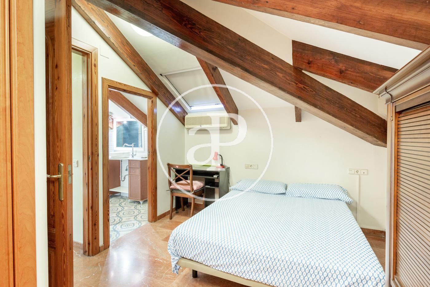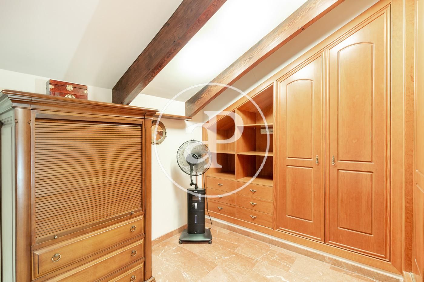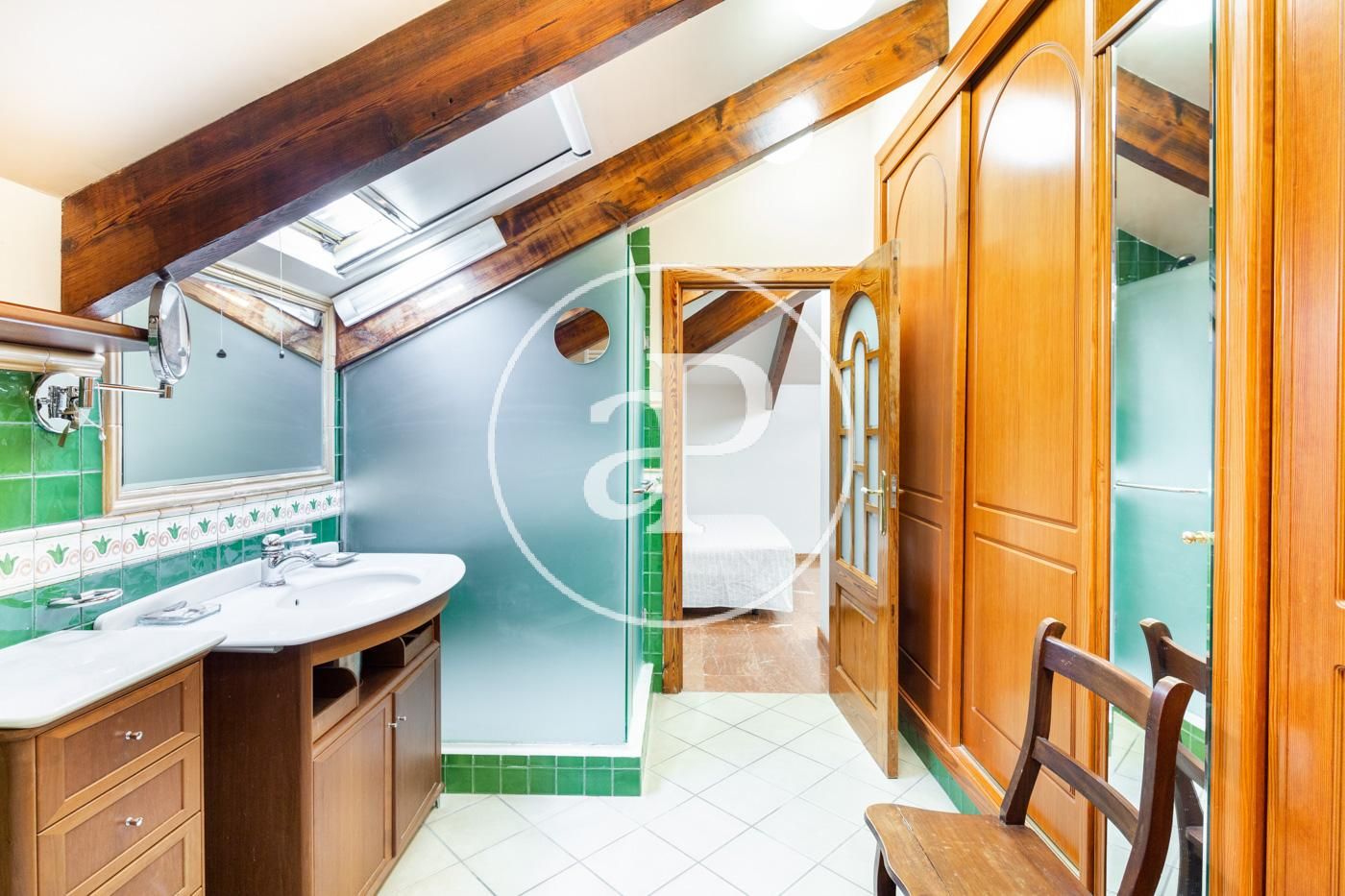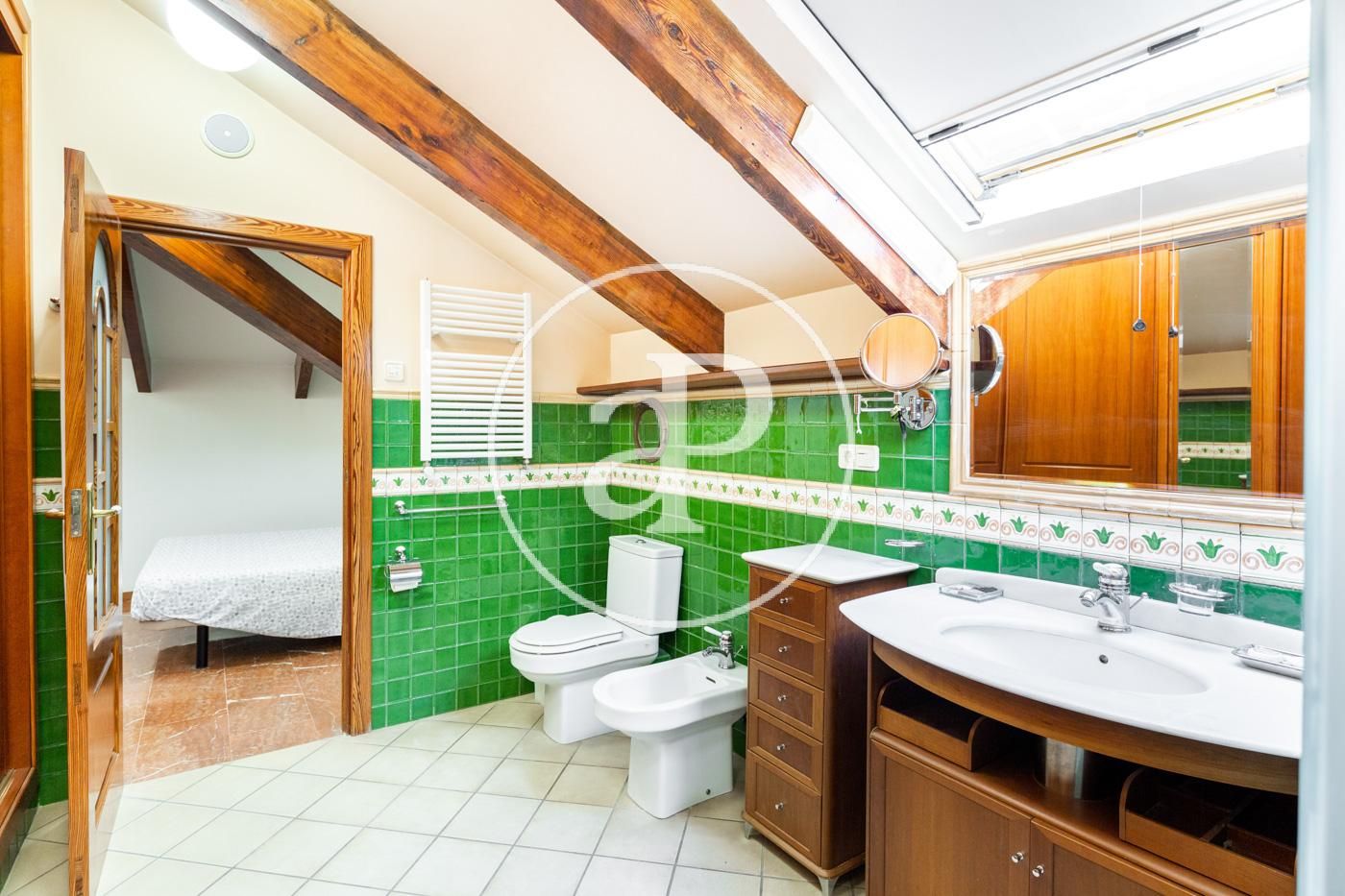 La primera planta cuenta con 4 dormitorios dobles, con armarios empotrados, y dos baños completos. Una escalera comunica con un espacio abuhardillado, con ventanas orientadas a los 4 puntos cardinales y vistas a la playa.
