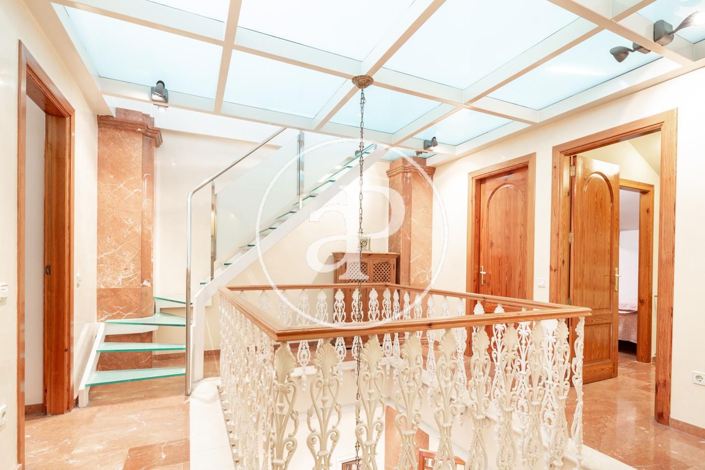 Ya en el jardín, la zona social y de invitados, cuenta con un gran salón comedor acristalado, zona de cocina y barbacoa, gimnasio con baño de vapor. Además, dormitorios extra para invitados y zona de parking.