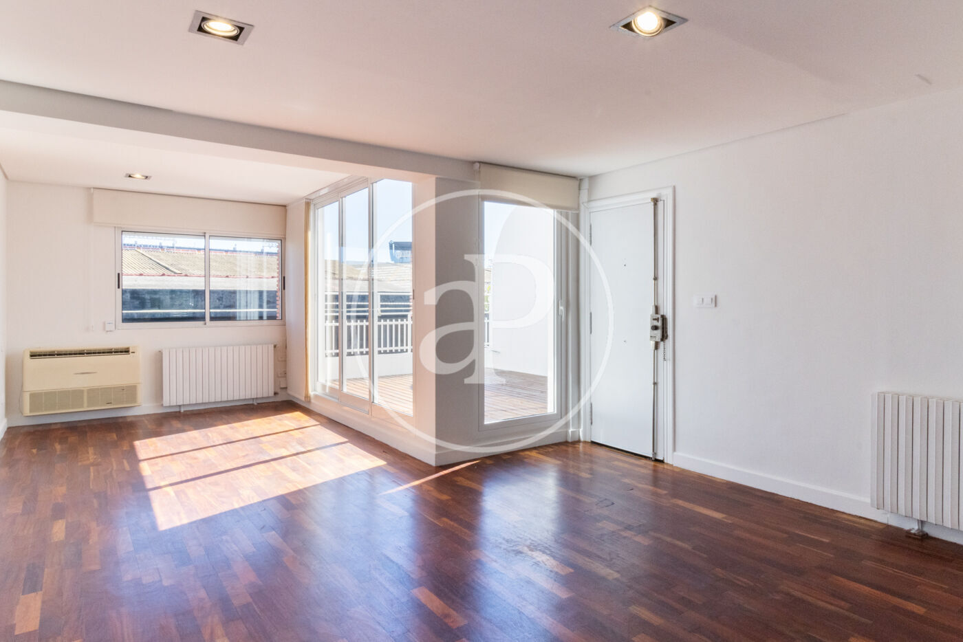 Salón comedor amplio, calefacción y aire acondicionado con acceso a estupenda terraza de tarima.