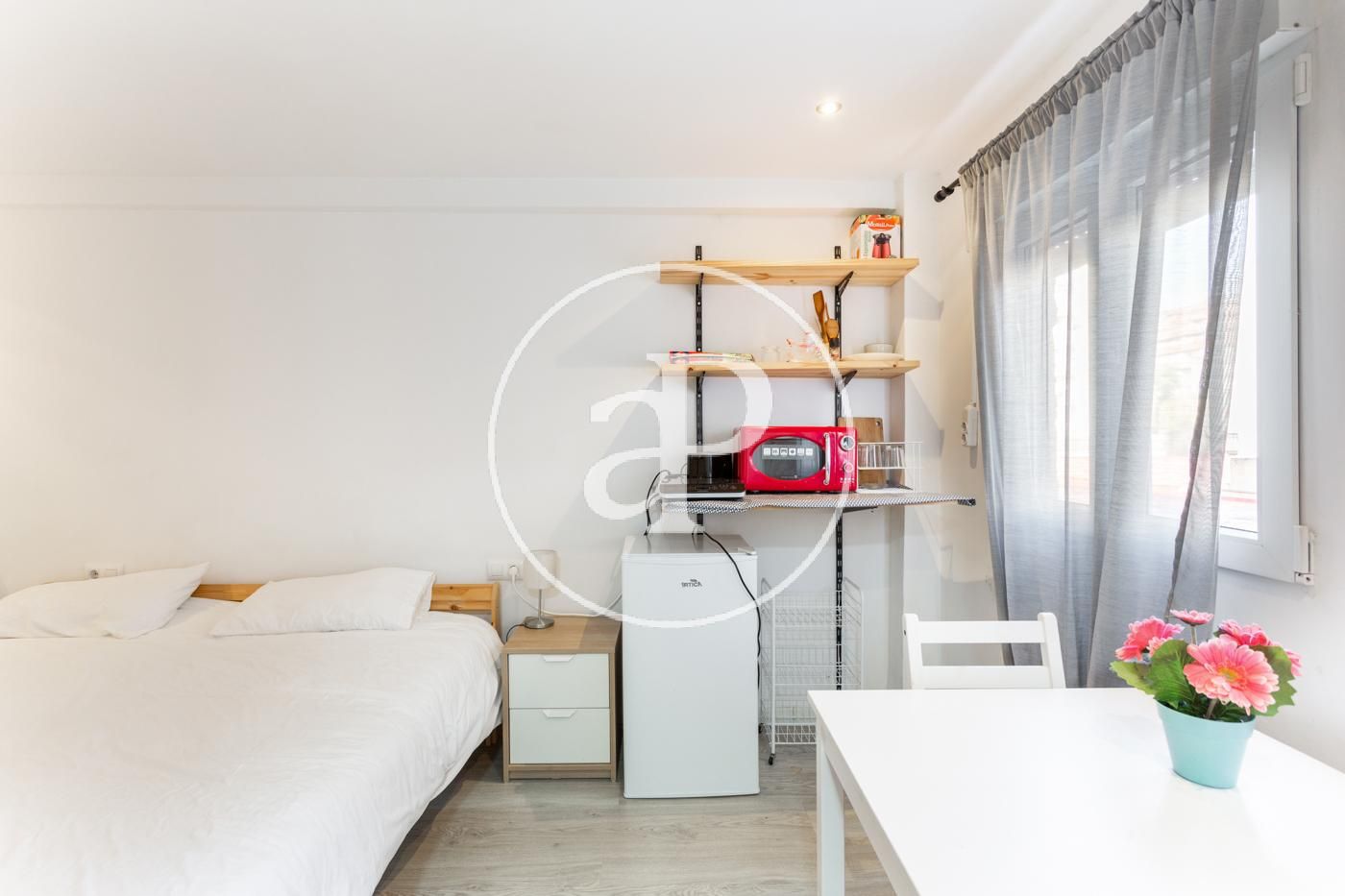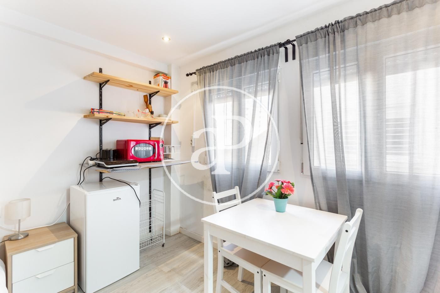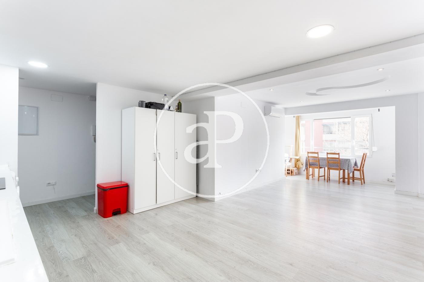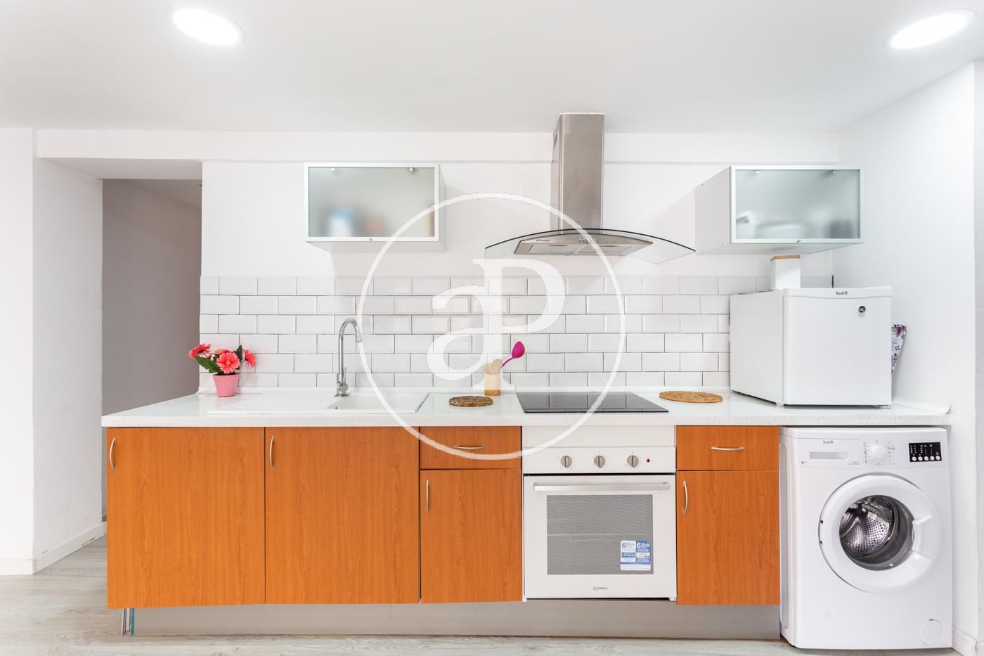 El piso se compone de tres habitaciones que a la vez son mini-pisos, con baño privado cada uno y cocina equipada, y uno de ellos con balcón. A la vez tiene una cocina principal totalmente equipada, concepto abierto unido con un amplio salón comedor con ventanal. Es muy luminosa. Dispone de aire acondicionado frio/calor, en todas las estancias, suelo de parquet, luces mediante sensores.