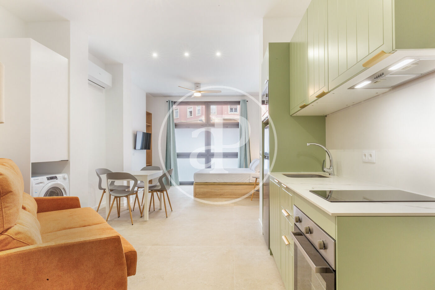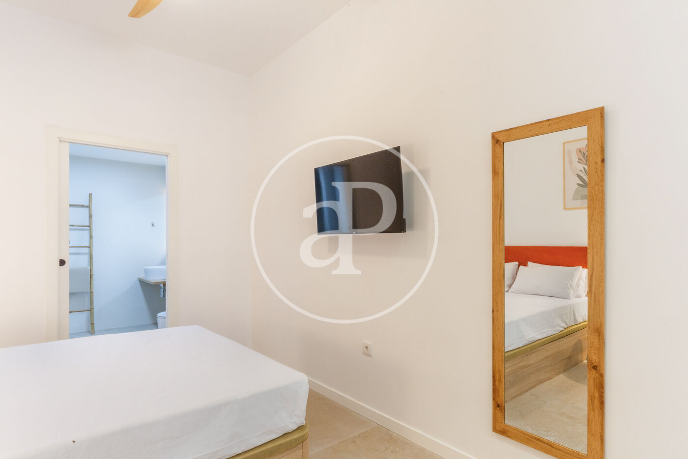 En una calle arbolada del atractivo barrio de Malasaña encontramos este espectacular piso exterior, luminoso, soleado y reformado integralmente, a estrenar, con cuidado interiorismo y mucho encanto. Consta de un amplio salón comedor con tres balcones hacia la fachada, cocina independiente, dos dormitorios, el principal muy amplio, con sus respectivos baños en suite y otro baño completo adicional. El piso se entrega completamente amueblado, listo para entrar a vivir. La finca cuenta con ascensor y trastero en la última planta. Se trata de una oportunidad única, ya sea para vivir o para alquilar con un altísimo potencial de rentabilidad, dada su ubicación en una buena finca, la calidad de la reforma y la localización estratégica en una de las mejores zonas del vibrante barrio de Malasaña. Malasaña, uno de los barrios más emblemáticos de Madrid, es conocido por su interesante vida cultural y su espíritu alternativo. Situado en el distrito Centro, cerca de la Gran Vía y del barrio de Chueca, Malasaña es un crisol de creatividad y diversidad que refleja el carácter único de la ciudad. Este barrio se destaca por su ambiente bohemio y su rica herencia histórica. Sus calles estrechas y adoquinadas están llenas de encanto, con una arquitectura que mezcla edificios antiguos con intervenciones modernas y coloridas. El espíritu artístico de Malasaña se manifiesta en sus numerosas galerías de arte, murales y tiendas vintage, que contribuyen a su atmósfera distintiva. ¿Te imaginas vivir aquí?