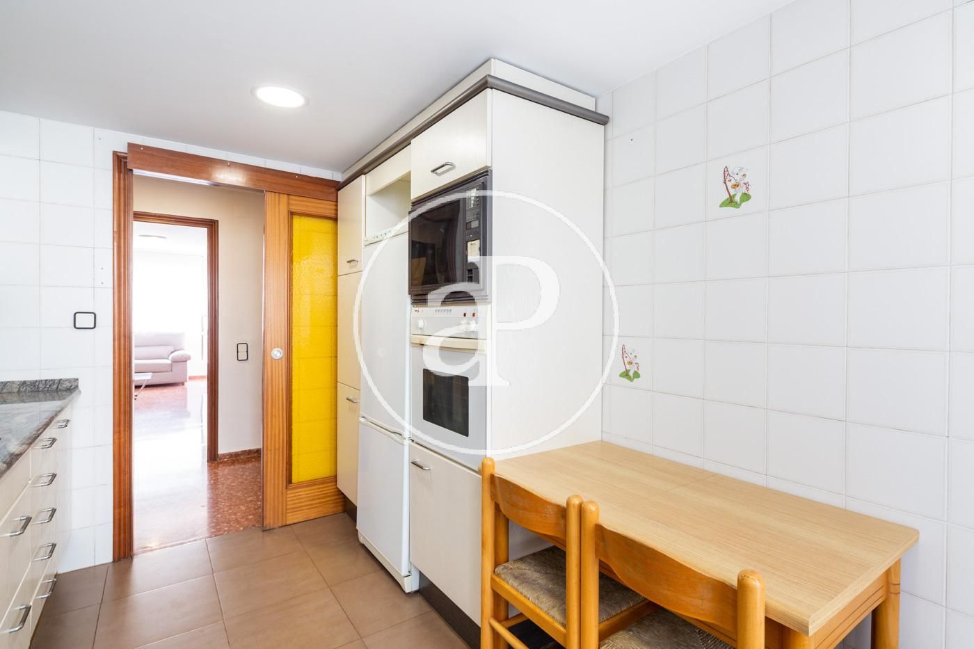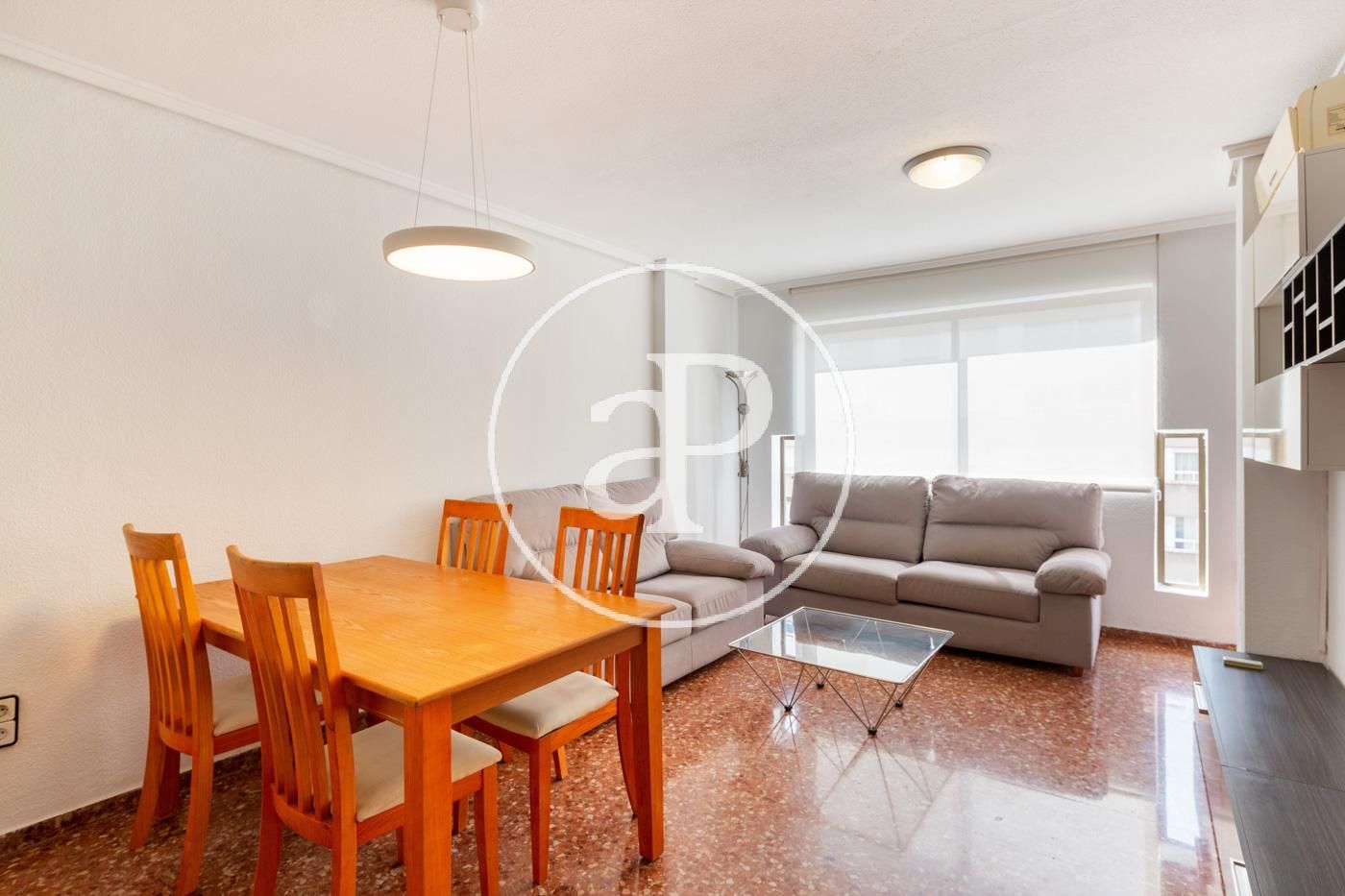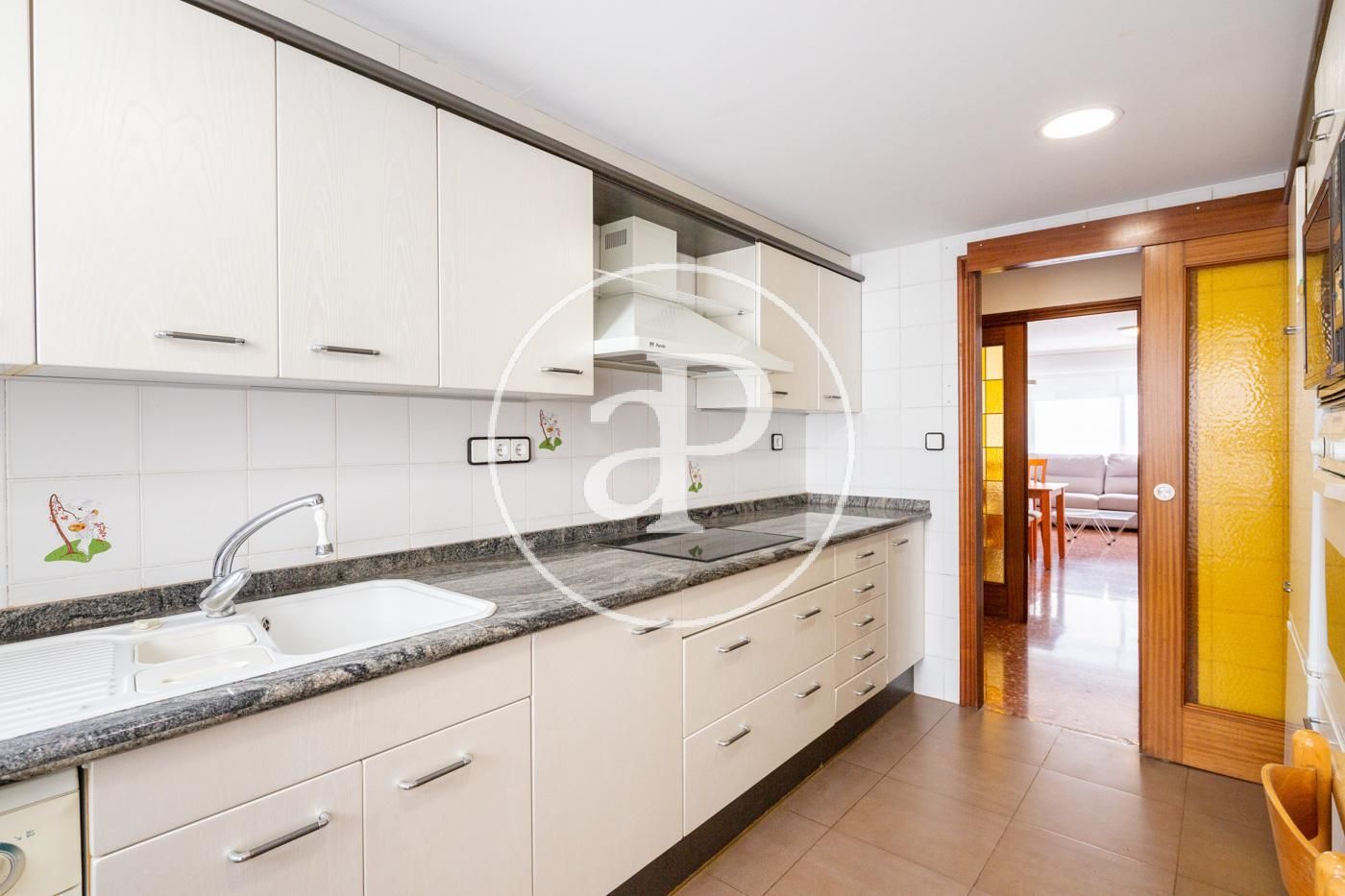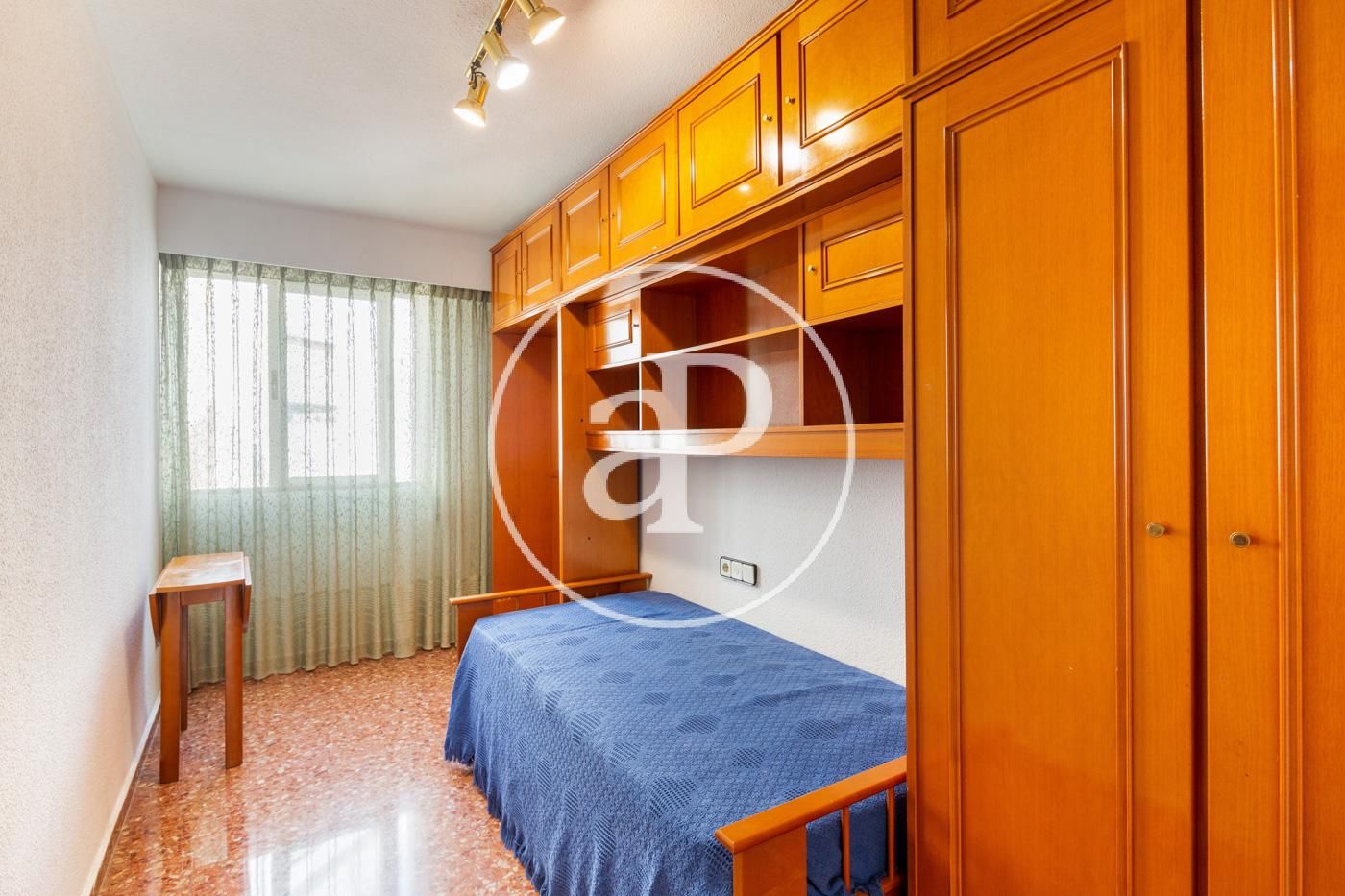 Es un piso familiar de 91m2 exterior muy amplio y muy bien distribuido en una 4ta altura. Dispone de un bonito salón comedor bien iluminado con acceso al balcón, una cocina completamente equipada e independiente con acceso al área de lavandería y con 4 cómodas habitaciones con armarios empotrados. Cuenta también con 2 baños completos, Aire acondicionado en salón y habitación principal.