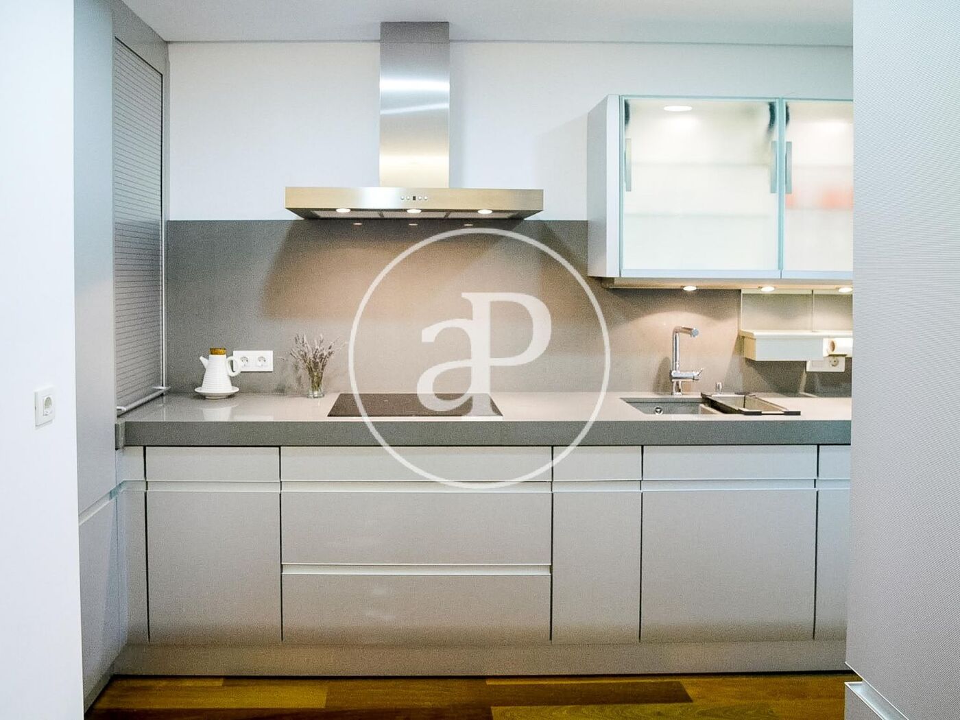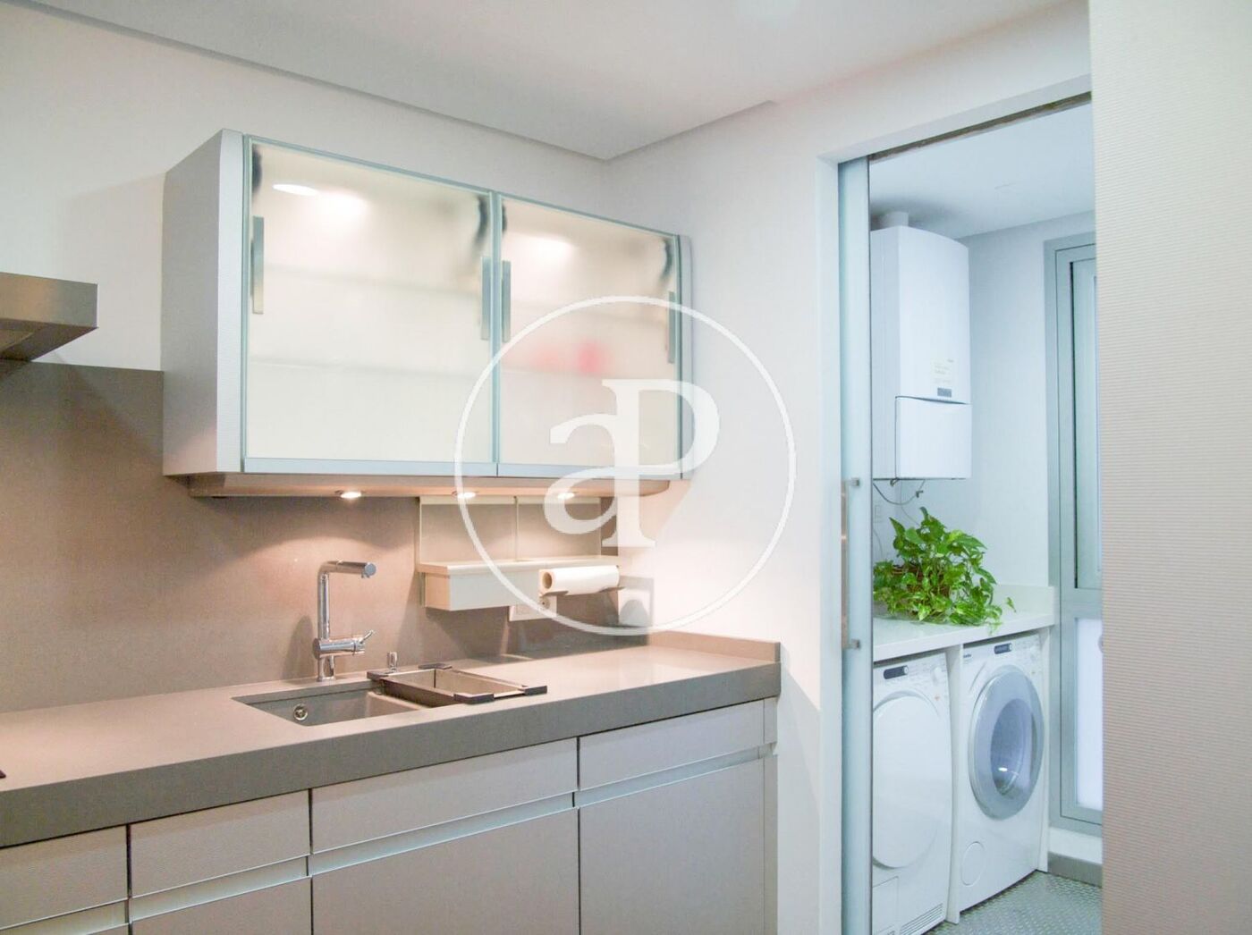 La cocina se encuentra completamente equipada y posee zona de lavadero. Cuenta con 3 habitaciones, amueblado con exquisito gusto, con armarios empotrados, y 2 cuartos de baño, uno de ellos en suite.
