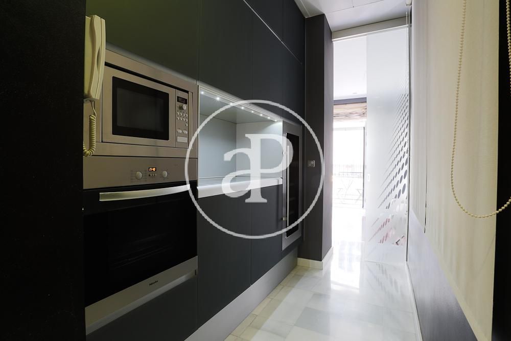 Se alquila este precioso piso de diseño junto al Mercado de Colón en un edificio clásico pero totalmente reformado. El piso tiene una reforma espectacular y está completamente amueblado de diseño.