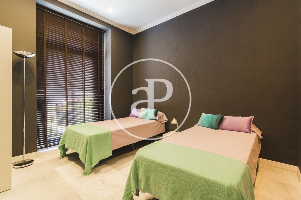 En un típica casa de 1958 de dos alturas, tan caracteristicas del Cabanyal, se encuentra este moderno y clásico dúplex de 151 m² de vivienda y terraza de 60 m². Está situado muy cerca de la playa de la Malvarrosa, en una zona muy tradicional del barrio y recae en dos calles disfrutando así de orientación este y oeste al mismo tiempo. Consta de dos alturas: La planta de abajo, a la que se accede a través de una escalera desde la calle se distribuye en un amplio salón con cocina integrada completamente equipada en la zona oeste, mientras que en la otra parte se encuentra un dormitorio auxiliar, la escalera que arranca desde el recibidor y el dormitorio principal con cuarto de baño en suite, vestidor y amplias estancias y ventanales. En la planta de arriba se encuentra una sala diafana desde la que se accede a un dormitorio muy amplio en buhardilla, un cuarto de baño completo con ducha, un cuarto de lavanderia y una terraza de 60 m² perfecta para ser disfrutada durante todo el año.  Esta magnífica vivienda cuenta con aire acondicionado, calefacción, suelo original de mosaico y parquet según que zonas y un estilo que combina clásico y moderno con mucho cuidado y gusto.  En cuanto a la zona, la vivienda se halla próxima a estaciones de servicio de transporte público ( EMT, tranvía e incluso tren ) y cercana al mar. Si estás interesado en esta vivienda, ¡ no dudes en ponerte en contacto con nosotros !