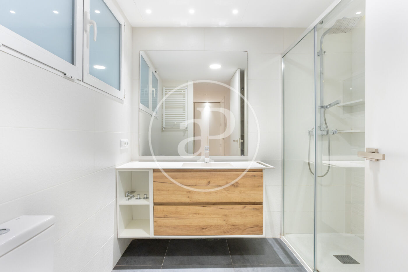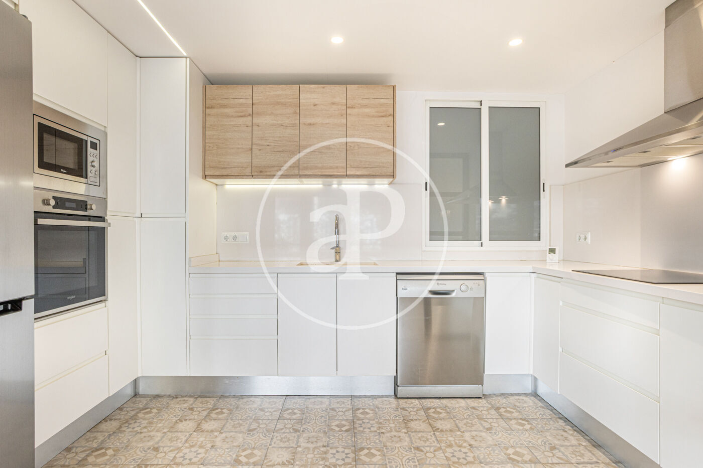 Se distribuye en tres amplias habitaciones (una de ellas en suite), dos baños completos, una terraza interior, lavadero con lavadora y secadora, y una cocina-comedor exterior.