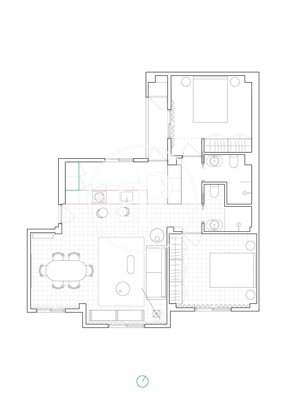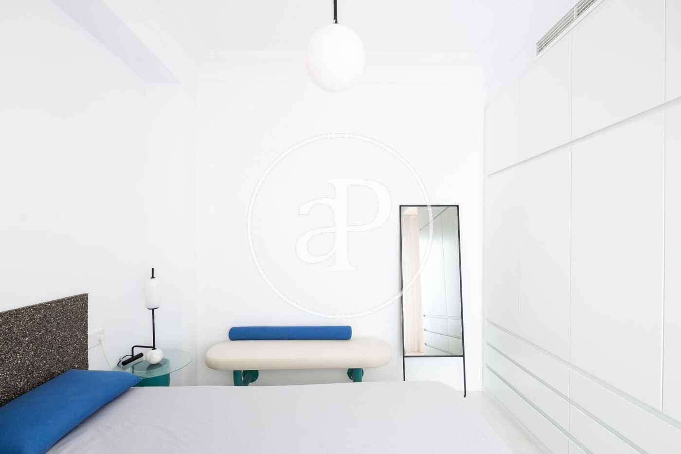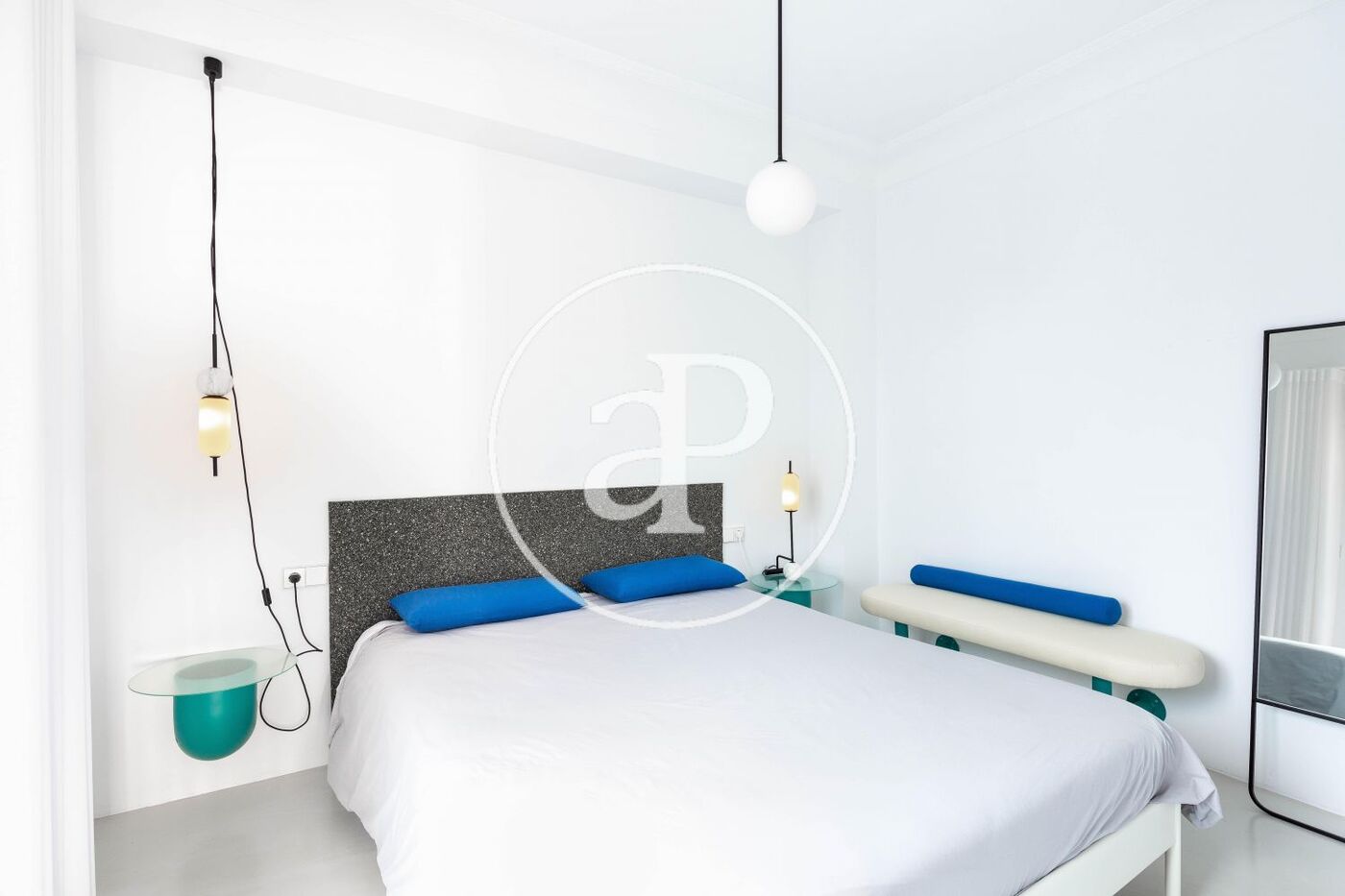 La zona de noche se compone de dos habitaciones dobles y dos cuartos de baño completos con ducha de la marca Roca. En la vivienda se ha querido conservar el suelo hidráulico original con la intención de realizar una reforma de contrastes, salvo en el dormitorio principal y en los baños, cuyas estancias se han vestido con un exclusivo microcemento. Este material, de gran resistencia y belleza, confiere a la propiedad un toque moderno atemporal que combina a la perfección con el resto de materiales que componen la vivienda. Los cuartos de baño gozan de un diseño moderno y griferías encastradas de la marca Tres. Además dispone de amplios ventanales de cristal doble climalit con persianas automáticas en las habitaciones y aire acondicionado por conductos. Igualmente, se ofrece la posibilidad de adquirir la vivienda completamente amueblada (precio de mobiliario a consultar). La calidad y el original diseño de esta propiedad ha recibido reconocimiento en diversas revistas internacionales de arquitectura en la que ha sido publicada.