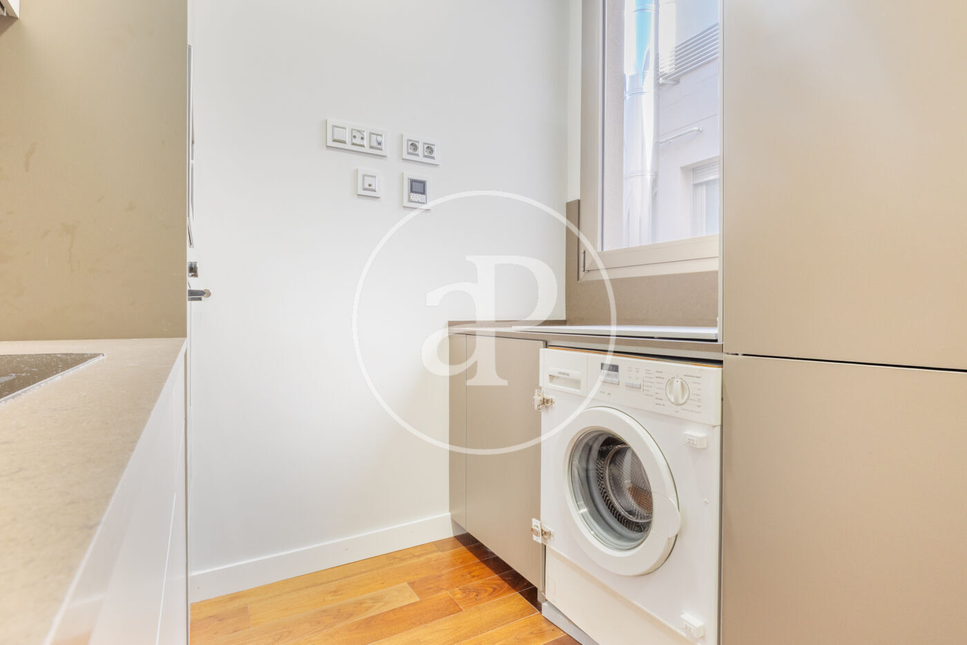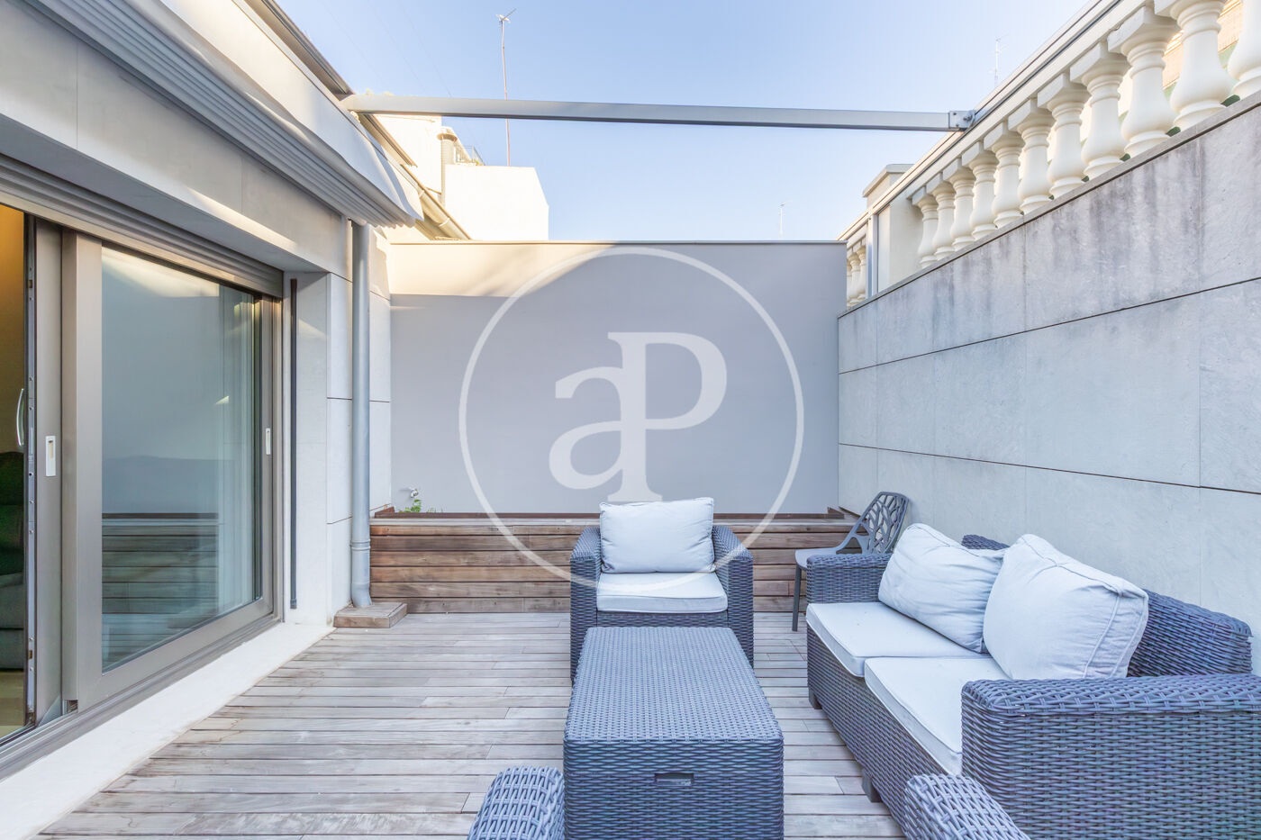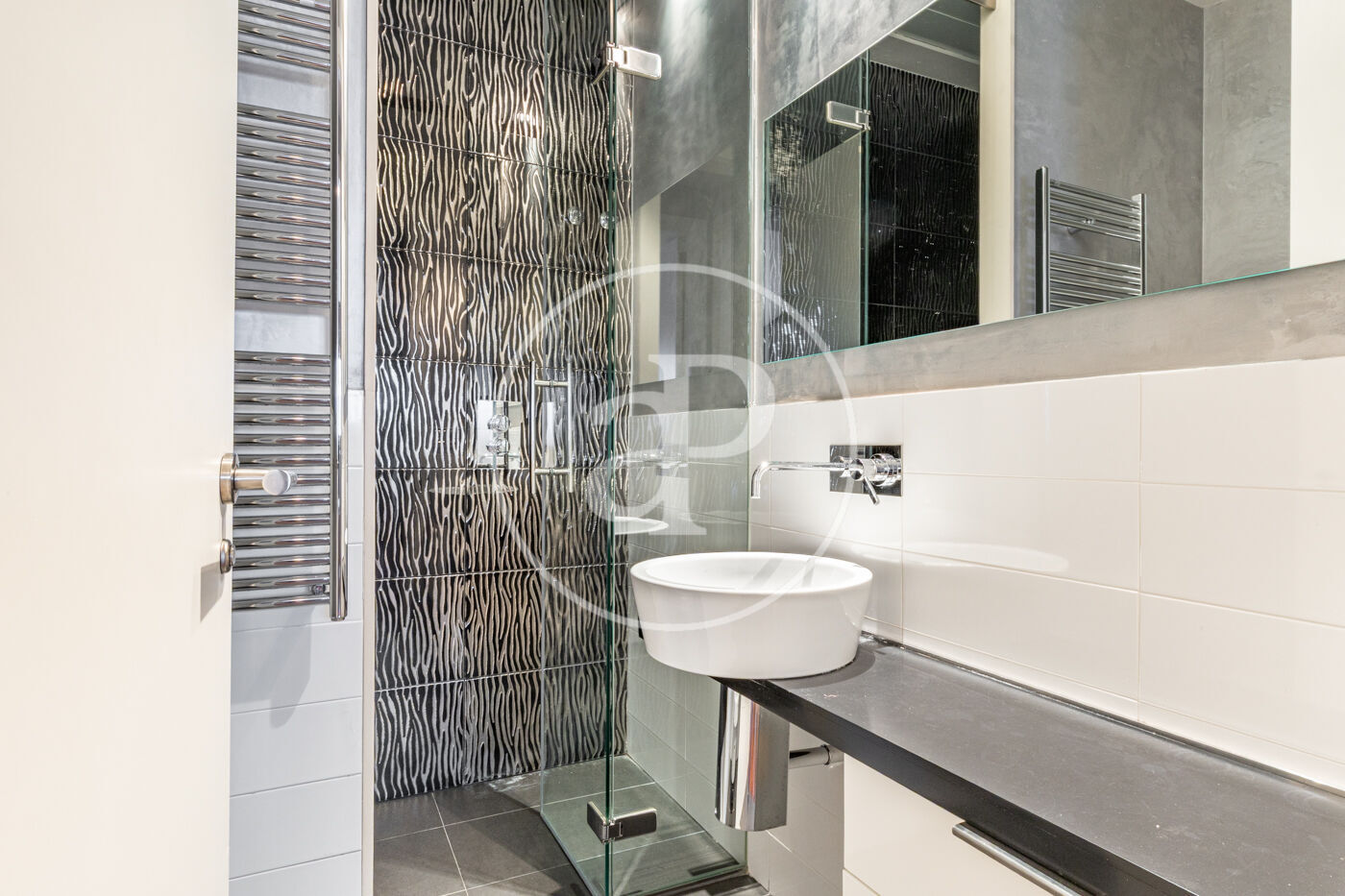 Descubre esta vivienda singular situada en la planta baja de un edificio clásico de 1910, en excelente estado de conservación. Una auténtica joya esquinera al tranquilo pasaje de Roger de Flor, donde el encanto original y el diseño contemporáneo se combinan a la perfección. Distribuido en dos plantas, haciendo un total de 85m2 construidos según plano. La propiedad dispone de entrada independiente a pie de calle, con doble puerta: una de hierro forjado que deja pasar la luz natural y los grandes portones de madera originales, totalmente restaurados. Un amplio recibidor conduce, tras unas elegantes puertas de cristal, al espacio abierto de salón-comedor y cocina, presidido por espectaculares suelos hidráulicos y techos de 4 metros de altura, que aportan una sensación de amplitud y carácter inigualable. Los baños, con suelos de microcemento, y las carpinterías de madera originales —completamente recuperadas, oscilobatientes y con cristales climalit— son un ejemplo del cuidado por el detalle en cada rincón. El altillo superior alberga una zona de despacho, ideal para teletrabajo o como habitación de invitados. La vivienda cuenta con dos habitaciones, una suite principal doble con zona de vestidor y un baño con elegante pica de mármol, y una segunda habitación individual con amplio espacio para armarios. Un segundo baño completo incluye altillo de almacenamiento. La cocina, abierta e integrada en el salón, está equipada con todos los electrodomésticos paneleados, encimera de Silestone y un diseño funcional que respeta la esencia del espacio original. Destacan también sus paredes de ladrillo visto, zona de aguas independiente, aire acondicionado por conductos, ventiladores en los dormitorios, y un sistema de insonorización total, con las máquinas interiores del aire ocultas en cajones insonorizados. Una vivienda muy ventilada y luminosa, donde todas las estancias disponen de ventana, ofreciendo un confort excepcional en un entorno lleno de encanto y personalidad. Una oportunidad irrepetible para quienes buscan un hogar con alma, historia y diseño en pleno Eixample barcelonés. ¡Contáctanos para concertar tu visita y descubrir esta pieza única en Roger de Flor!