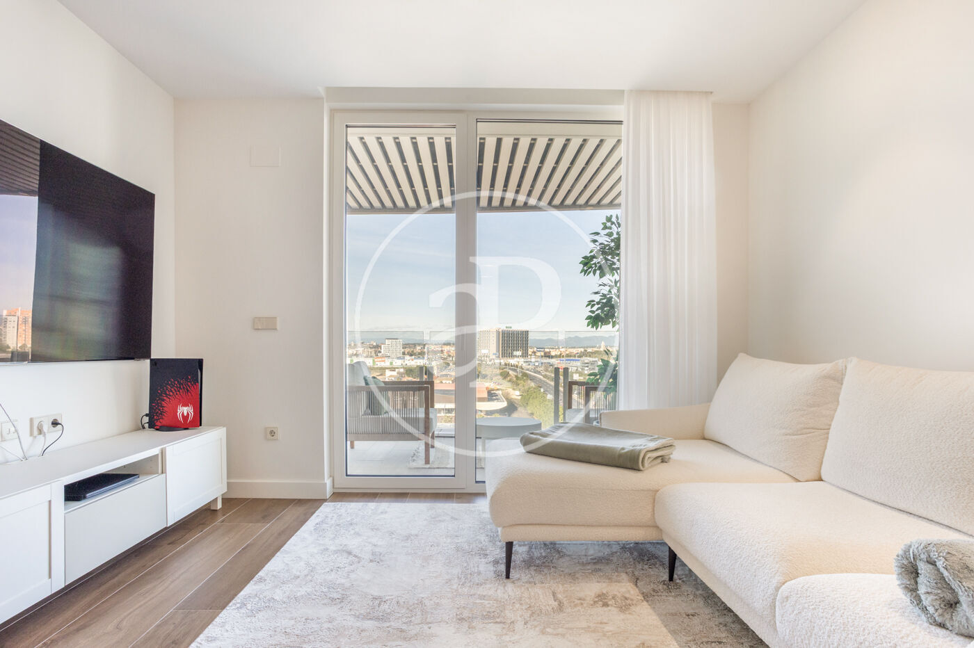 Impresionantes vistas ya que está situado en una séptima planta, vistas inigualables y acceso directo, desde todas las estancias, a una terraza de 20 m², ideal para cenar bajo las estrellas o relajarte mientras disfrutas del entorno.