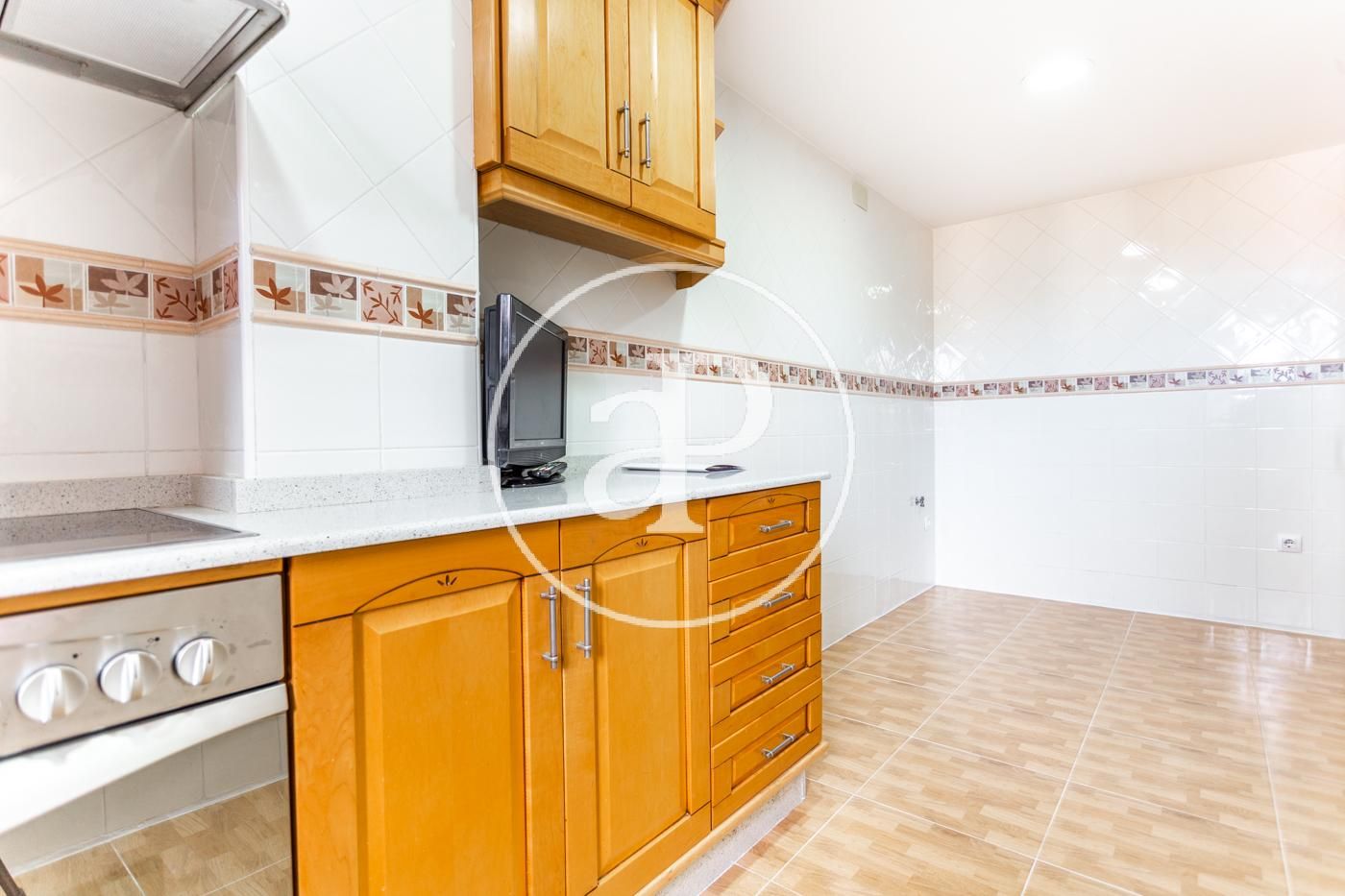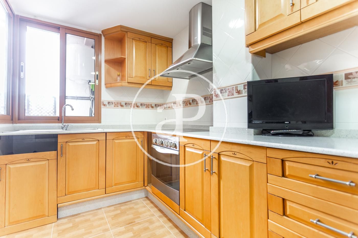 La vivienda se distribuye con un amplio salón comedor con terraza, que comunica con una alegre cocina amueblada en madera de roble.