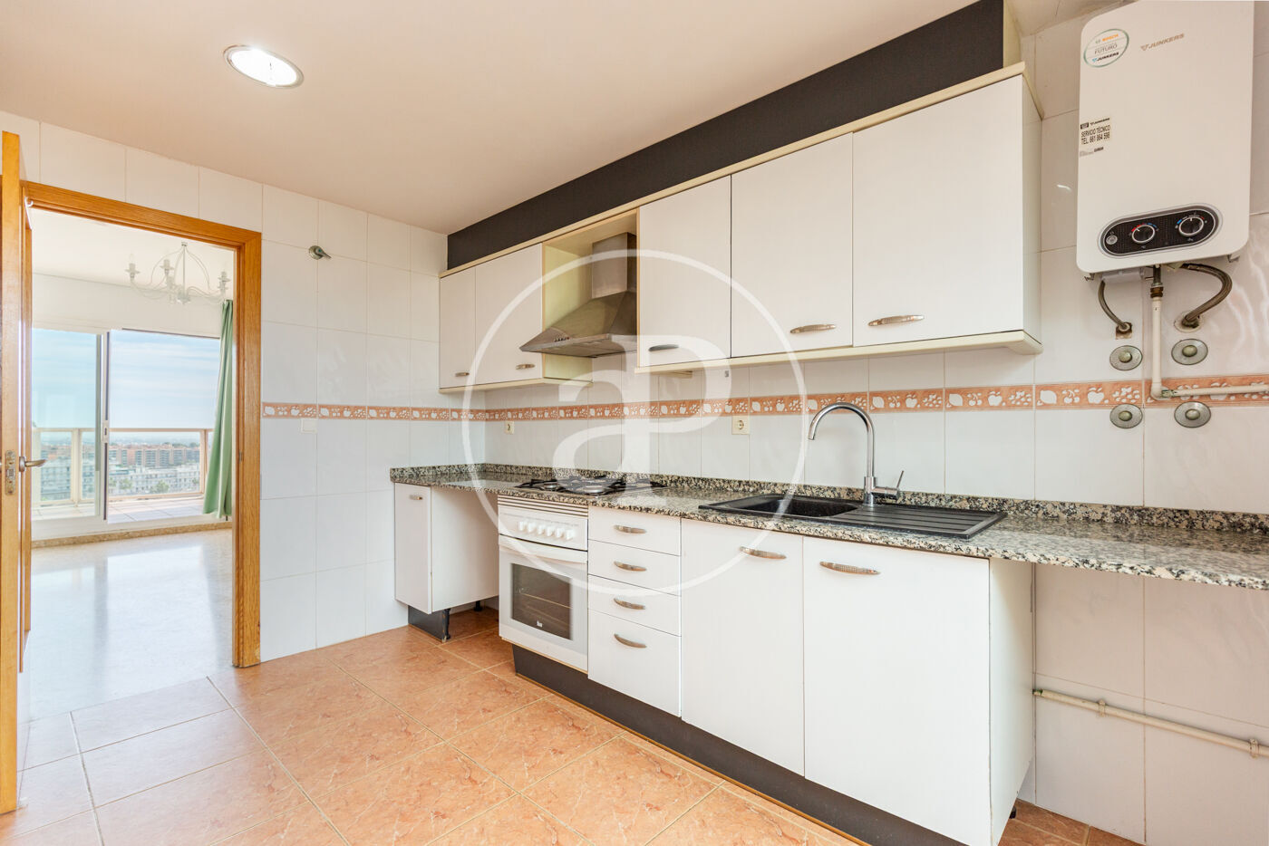 El piso forma parte de un completo residencial con piscina, amplias zonas verdes, parque infantil y servicio de conserjería 24 horas, lo que garantiza seguridad y bienestar para toda la familia. La vivienda se encuentra en la séptima planta de un edificio con ascensor, y se alquila sin amueblar y con la cocina totalmente equipada. También incluye plaza de garaje en el precio.