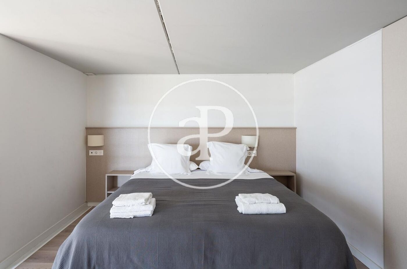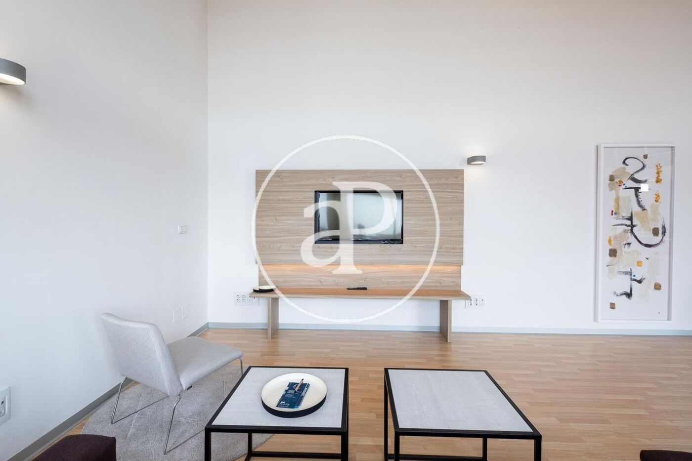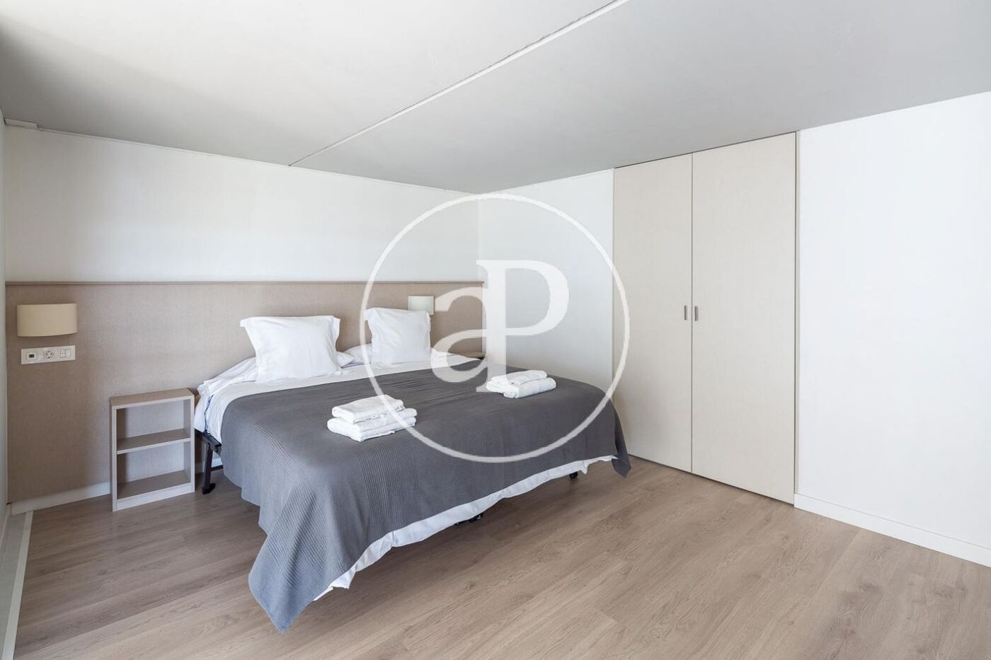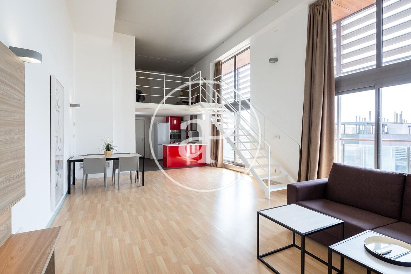 La vivienda está completamente amueblada con muebles de diseño y guardando una línea vanguardista, con líneas blancas y neutras. La planta baja la compone un cuarto de baño con ducha, cocina completamente equipada integrada en el salón que nos da acceso a una amplio balcón. Con los techos altos tenemos gran luminosidad y espacio. En la planta primera se encuentra el dormitorio con cama de matrimonio.